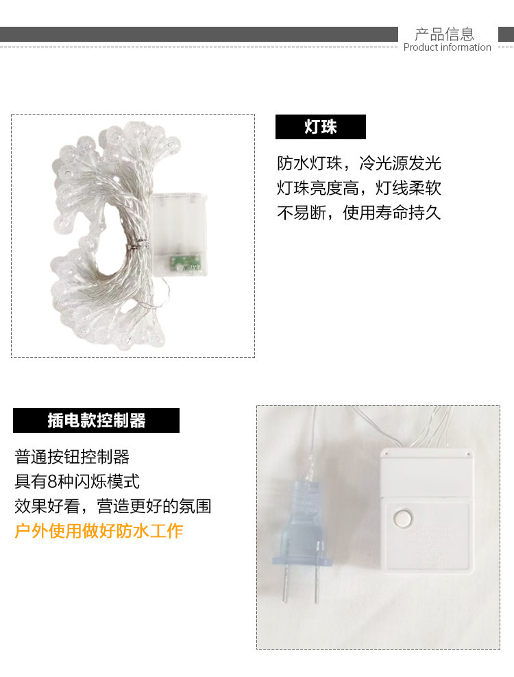 | 12 m 100 lights (male and female waterproof plug)-outdoor recommended | CN¥ 30.68 | 999999 piece available |