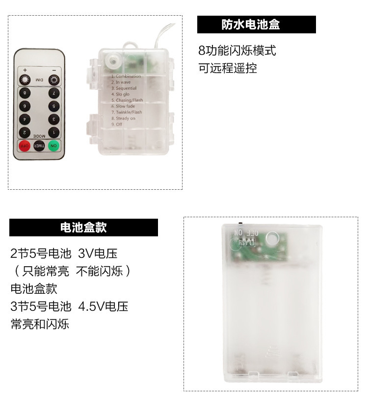 | 10 m 80 lights (8 flashing mode waterproof battery box + remote control) | CN¥ 25.37 | 99999 piece available |