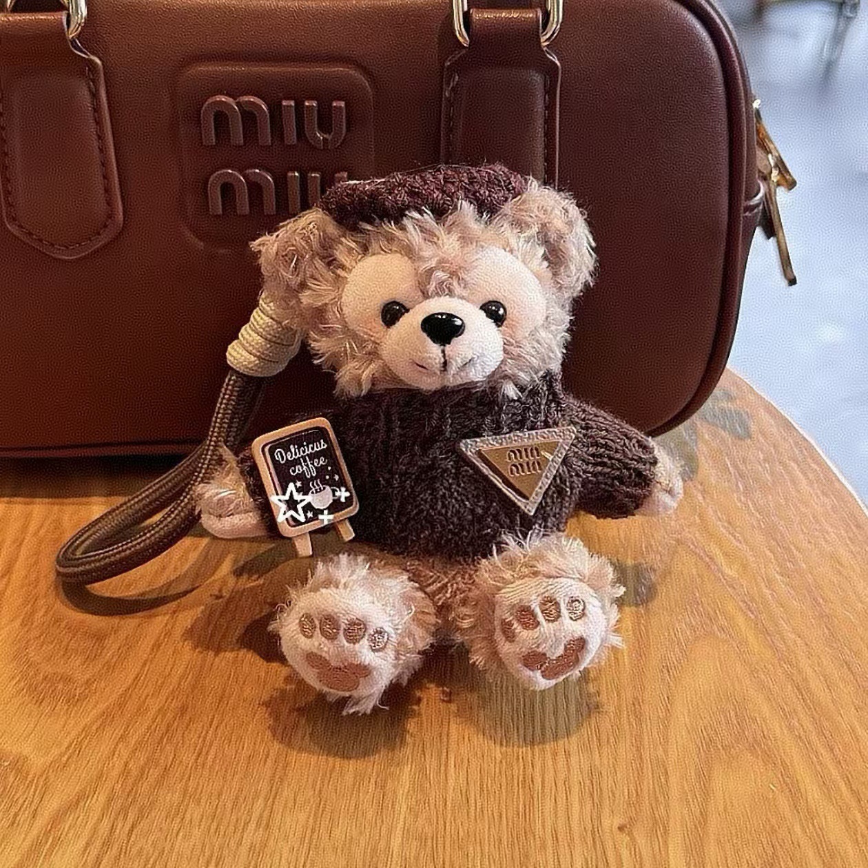 coffee clothes + beige suspender pants-rose rose