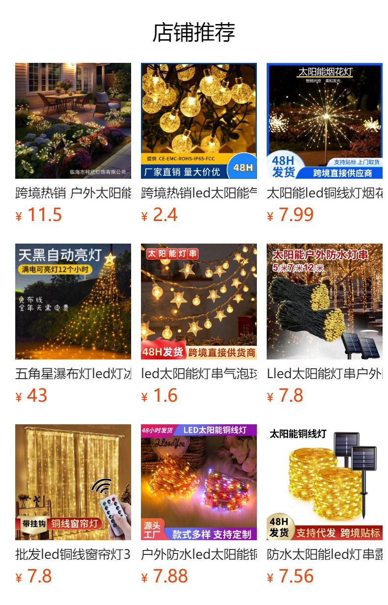 | solar model-6.5 m 30 lights eight modes | CN¥ 20.65 | 6325 set available |