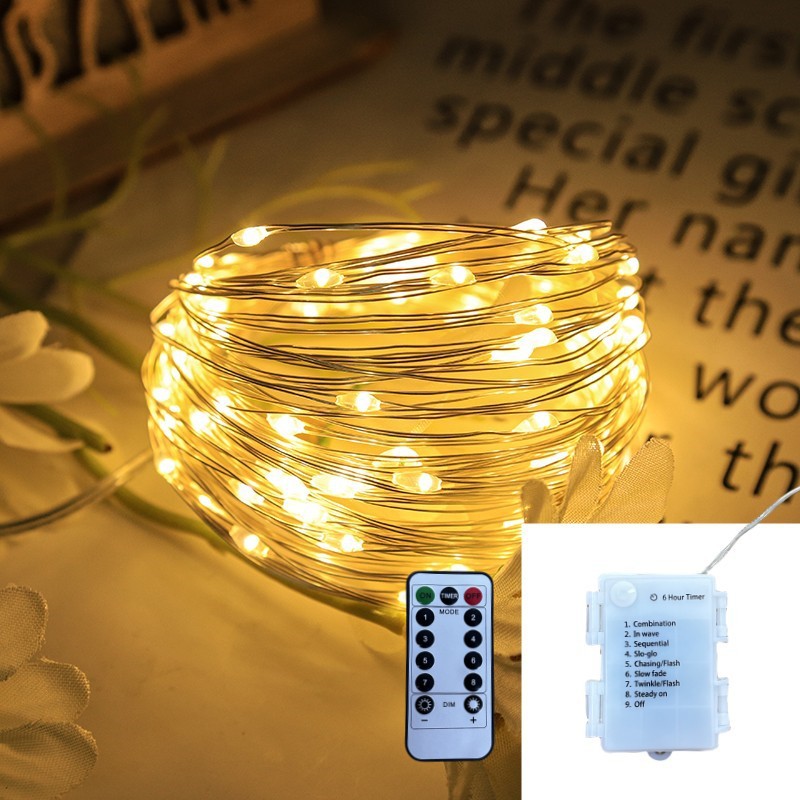 advanced 10 m 100l warm color (battery box waterproof +8 function flashing + send remote control) without battery