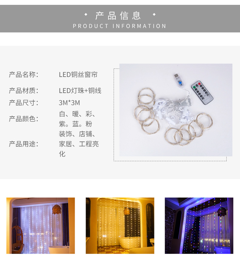 | [without hook] 3*2 m copper wire lamp with remote control (usb type)-82g | CN¥ 6.73 | 4930 piece available |
