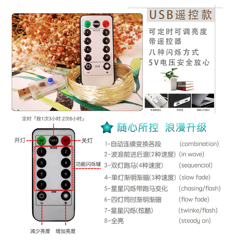 | 5 m 50 light [usb remote control +8 flash]] | CN¥ 7.07 | 999 set available |
