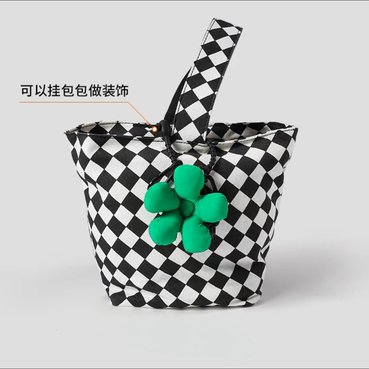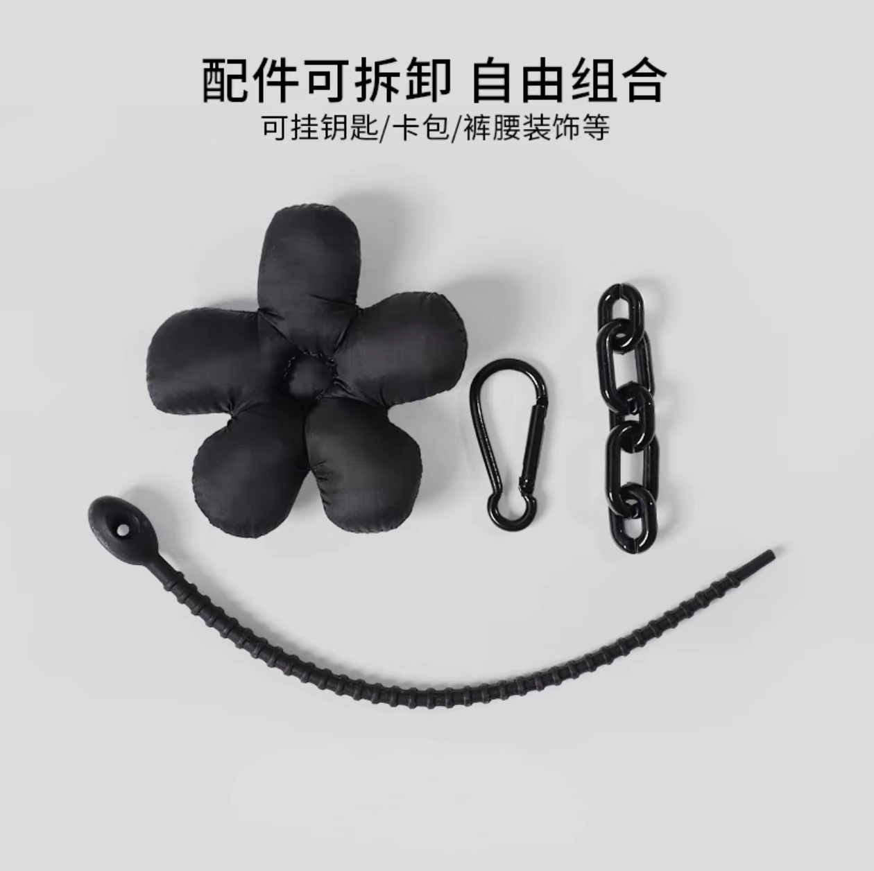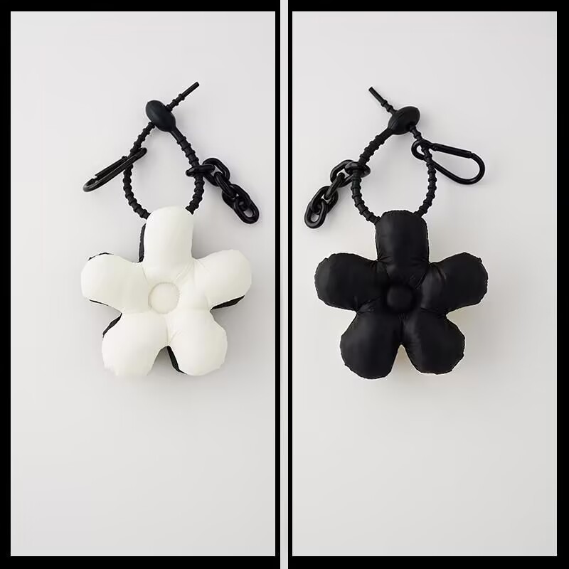 white and black mosaic flowers + black lanyard
