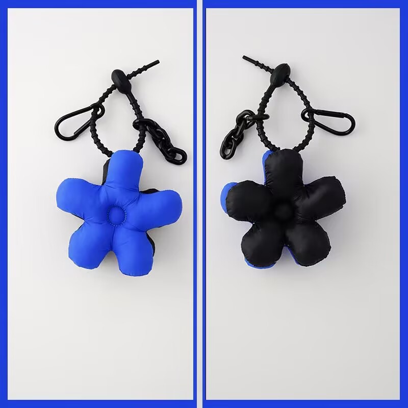 blue and black mosaic flower + black lanyard