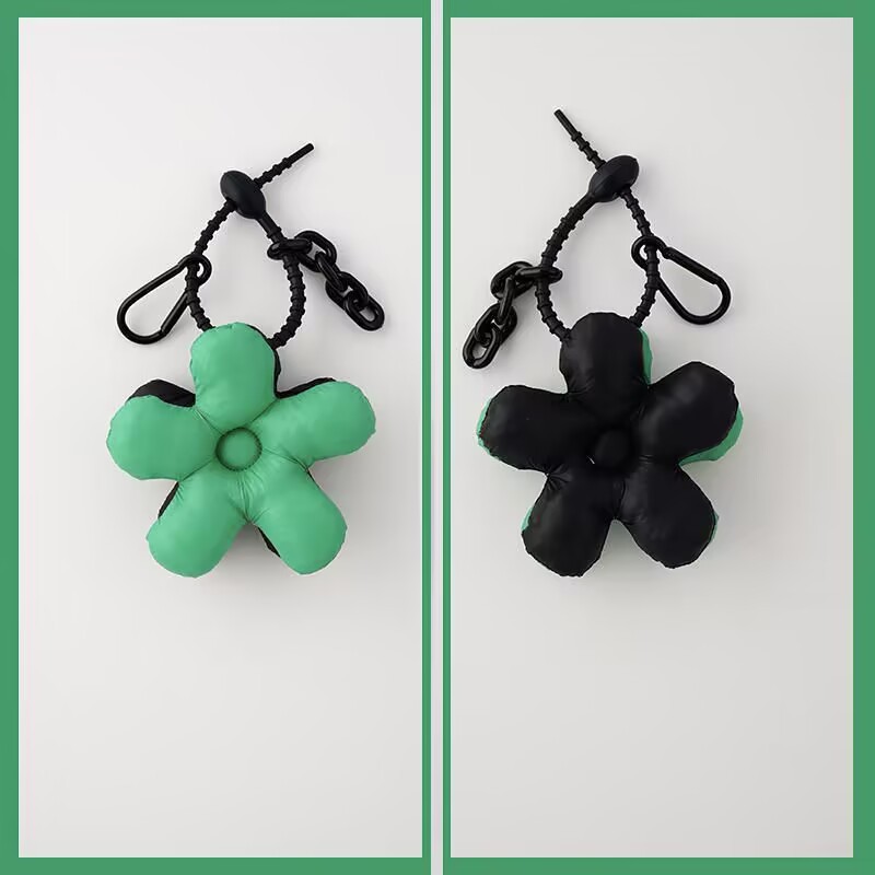 green black mosaic pattern flowers + black lanyard