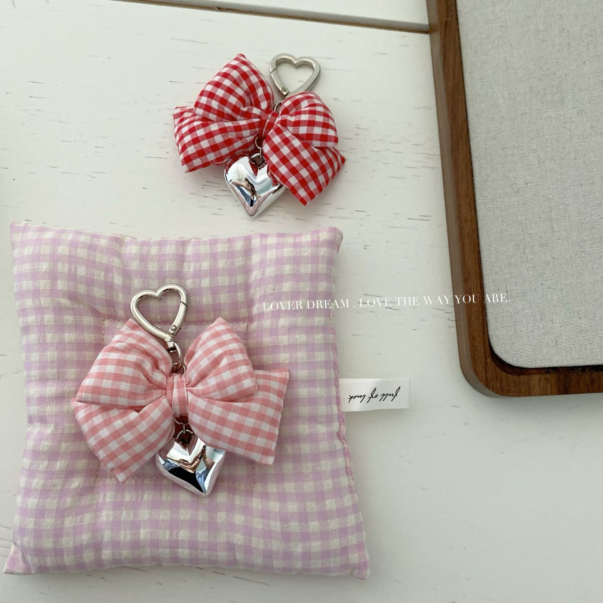 red plaid college style bow love pendant