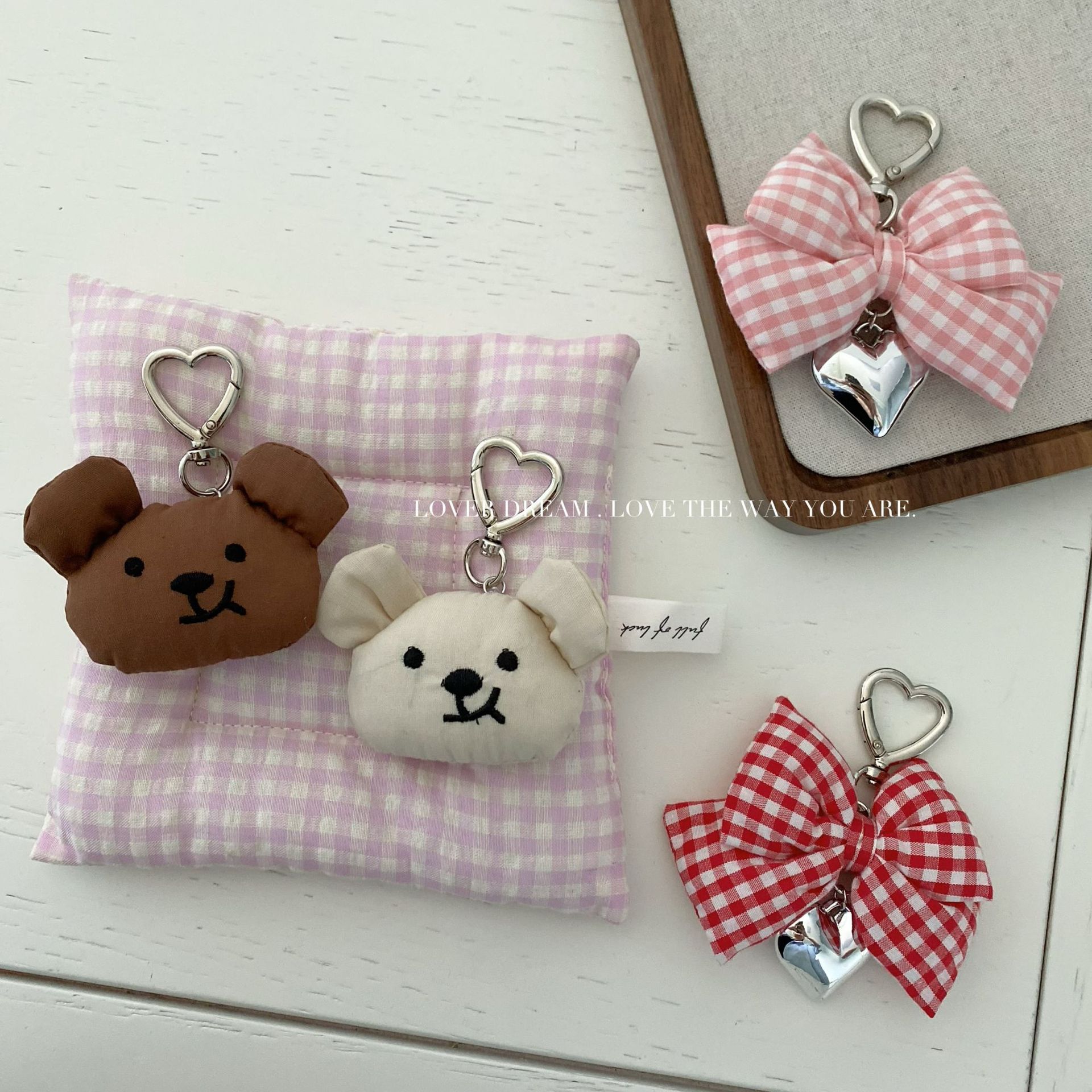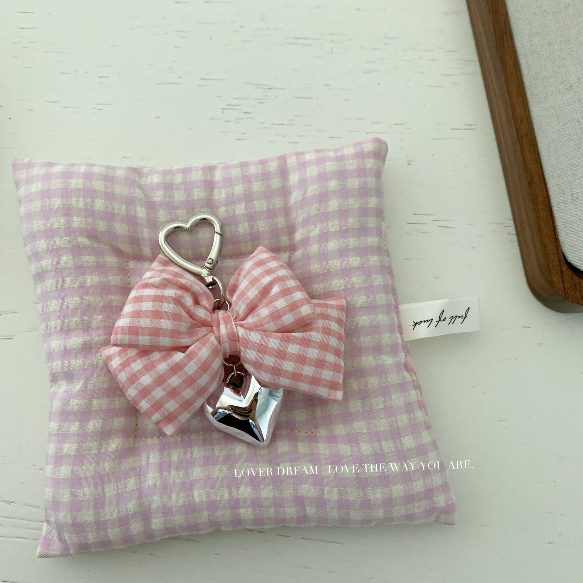 pink plaid college style bow love pendant