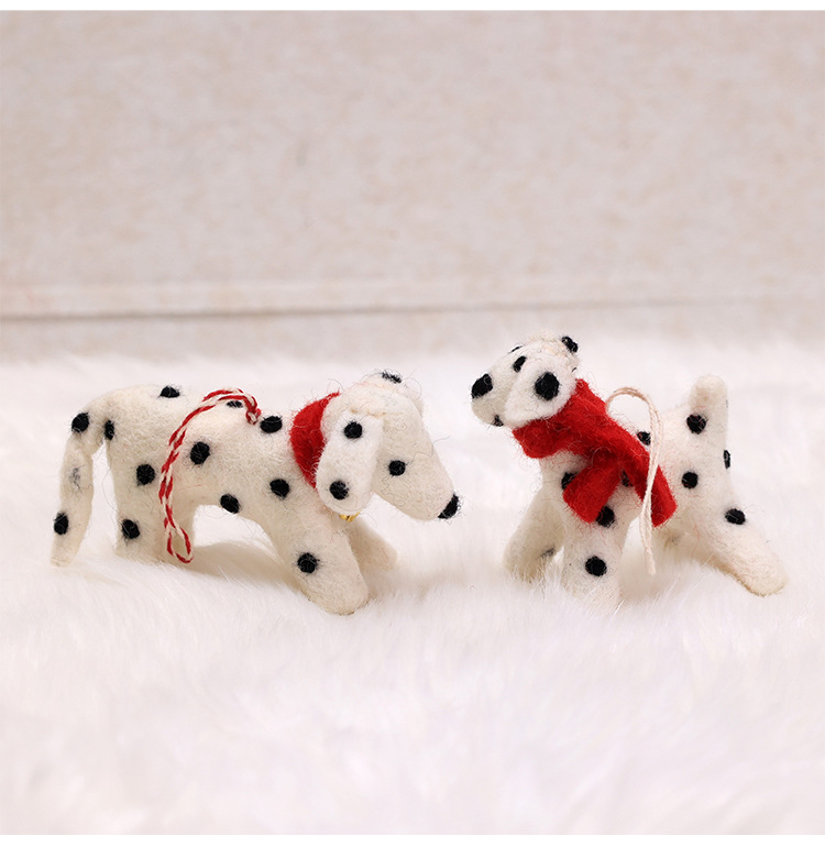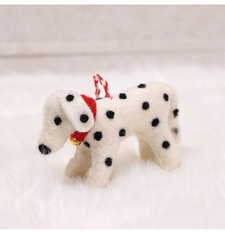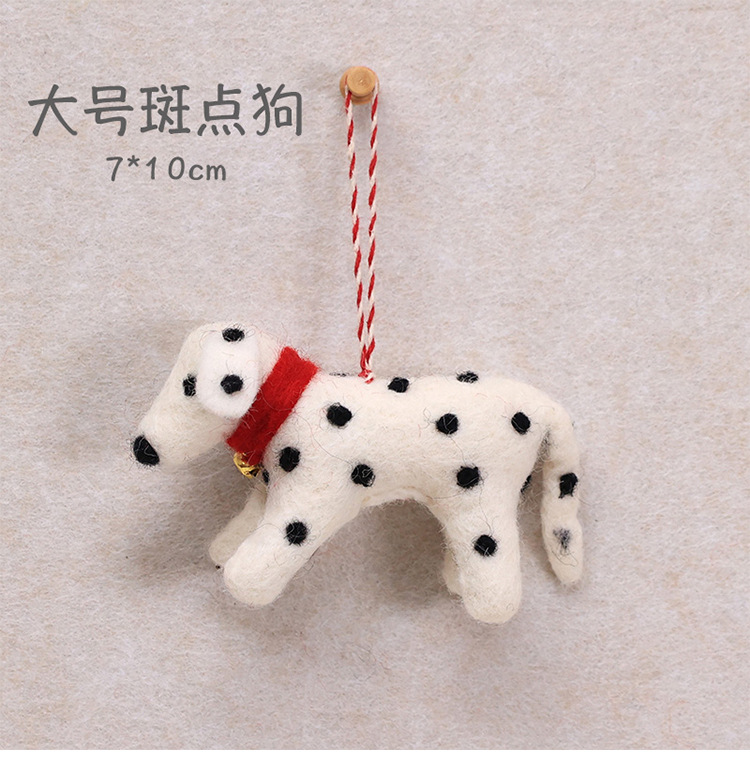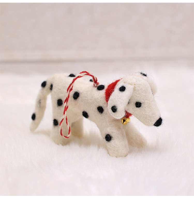 large spotted dog with bell ornaments
