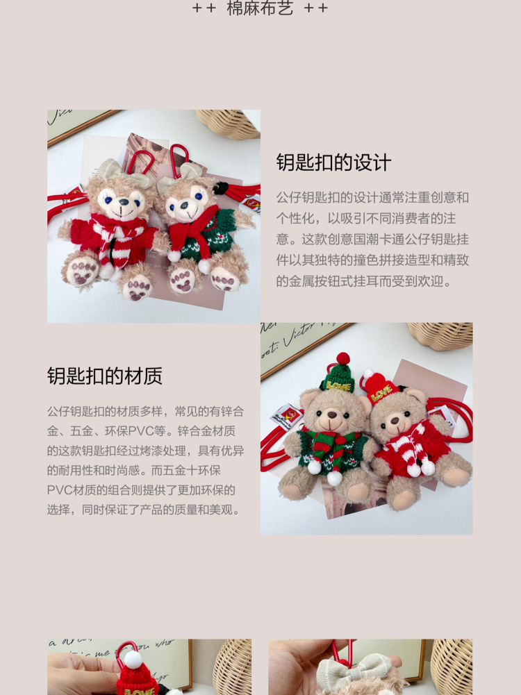 brown bear red sweater scarf-red keychain