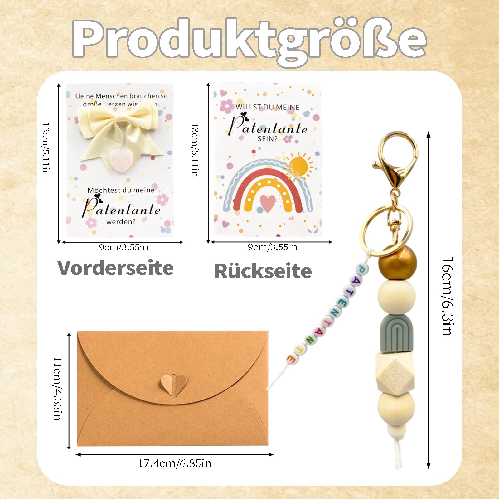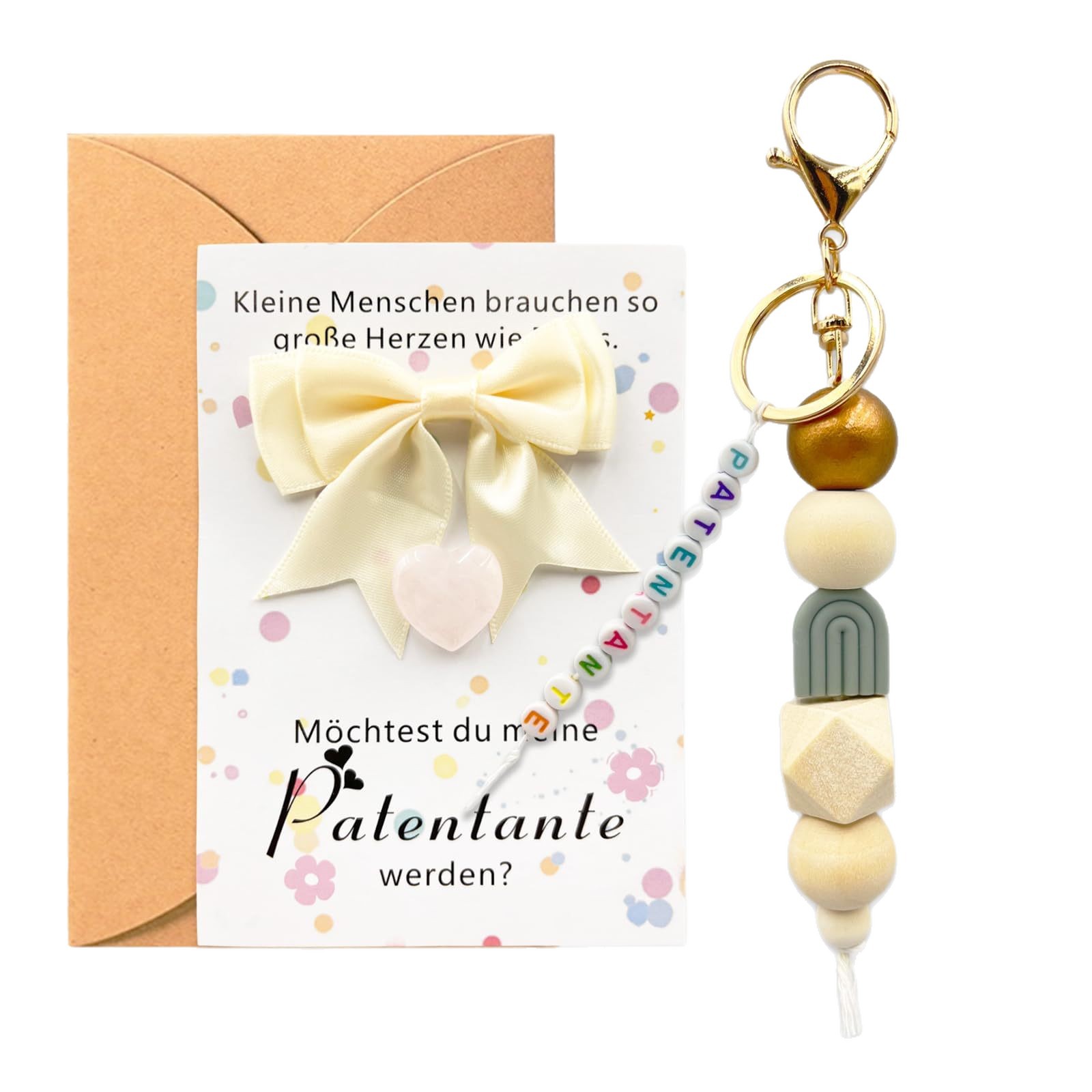 envelope + patentante wooden bead keychain