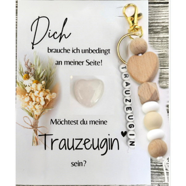trauzeugin wooden bead keychain