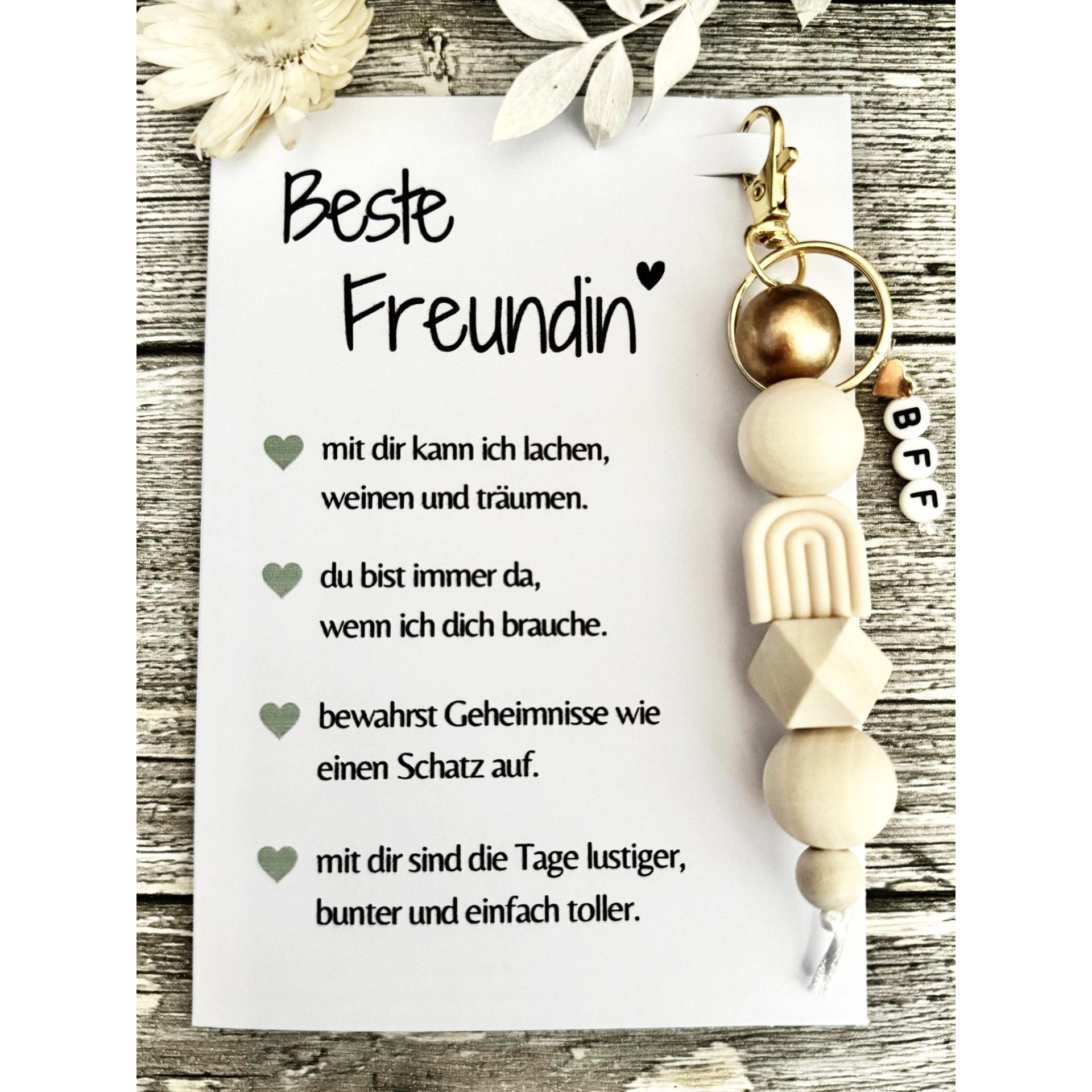 bff wooden bead keychain