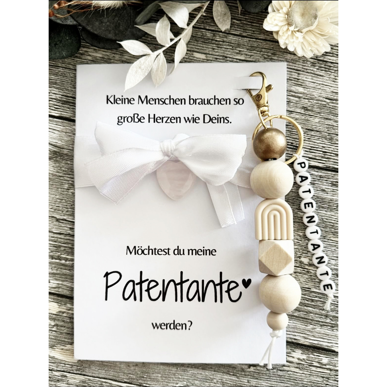 patentante wooden bead keychain + dried flowers