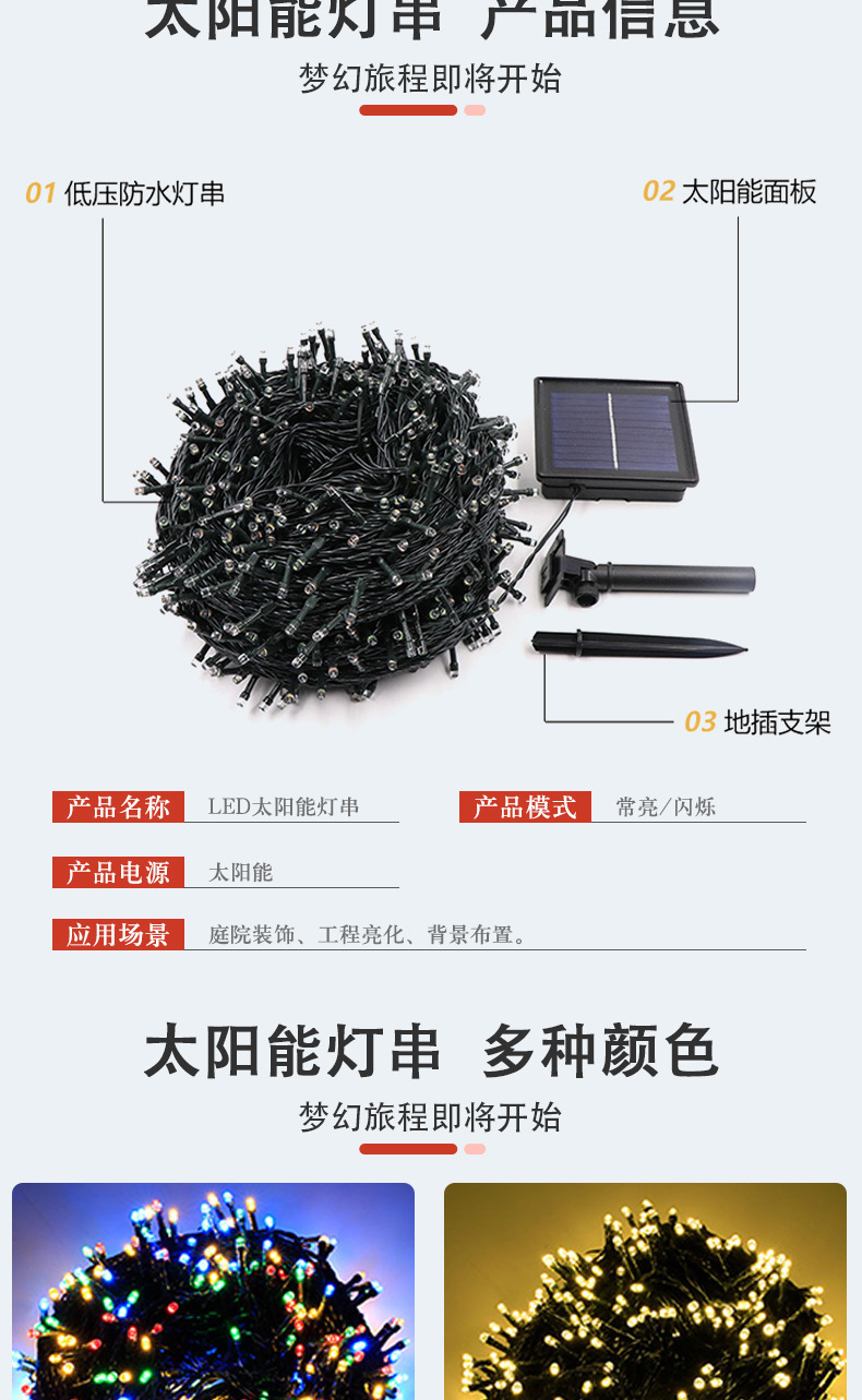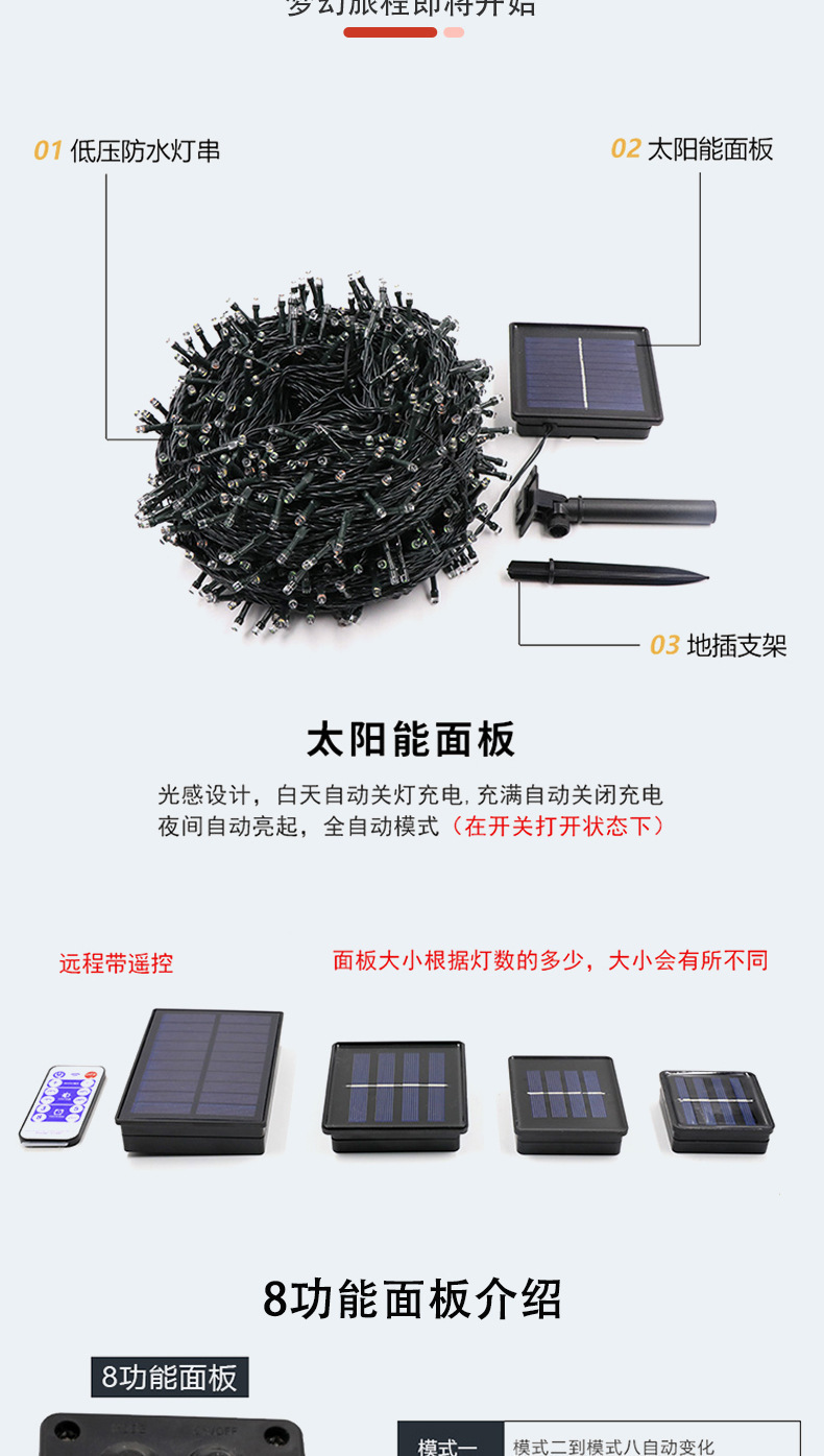 | 7 meters 50 lights solar 8 functions | CN¥ 17.35 | 49949 piece available |