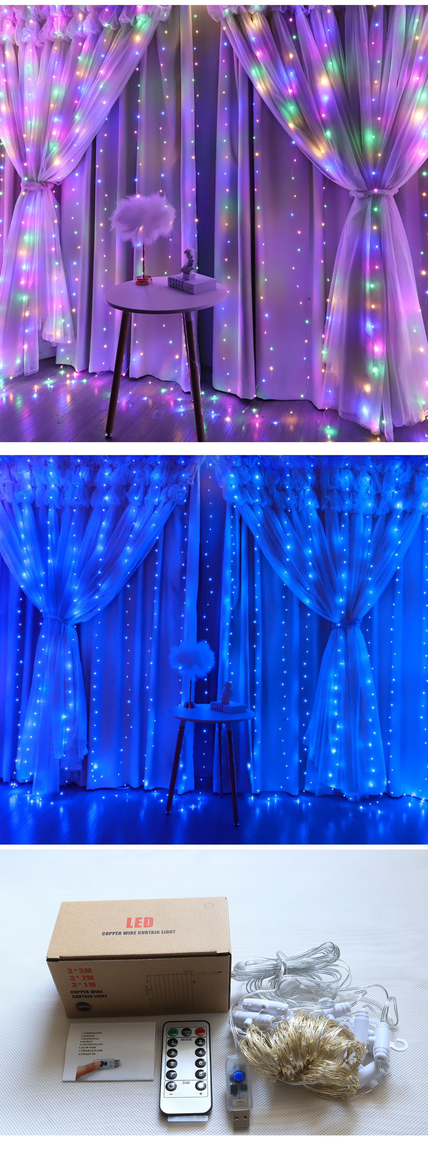 | 8 functions usb remote control 3*3 m 300 lights (without hook) | CN¥ 12.98 | 88880 piece available |