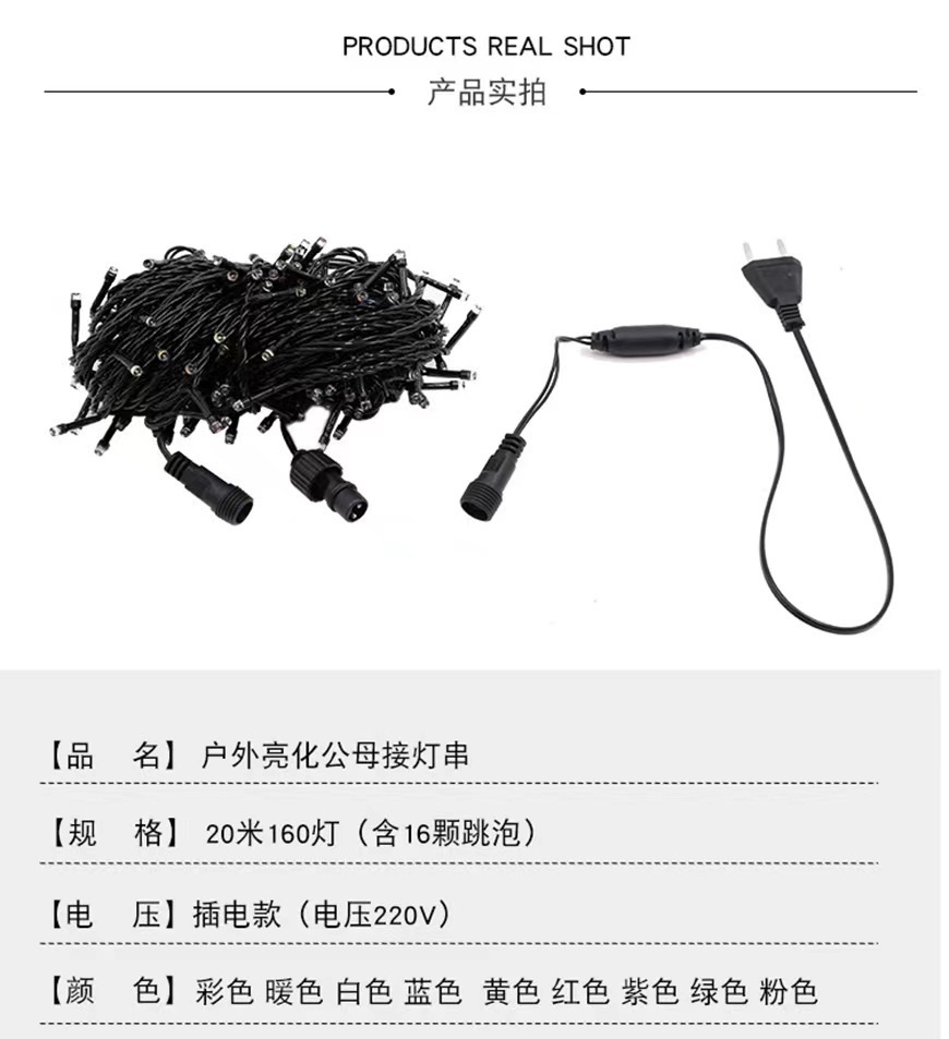 | male female plug 10 m 100 light with flash bulb 220v | CN¥ 9.44 | 84463 piece available |
