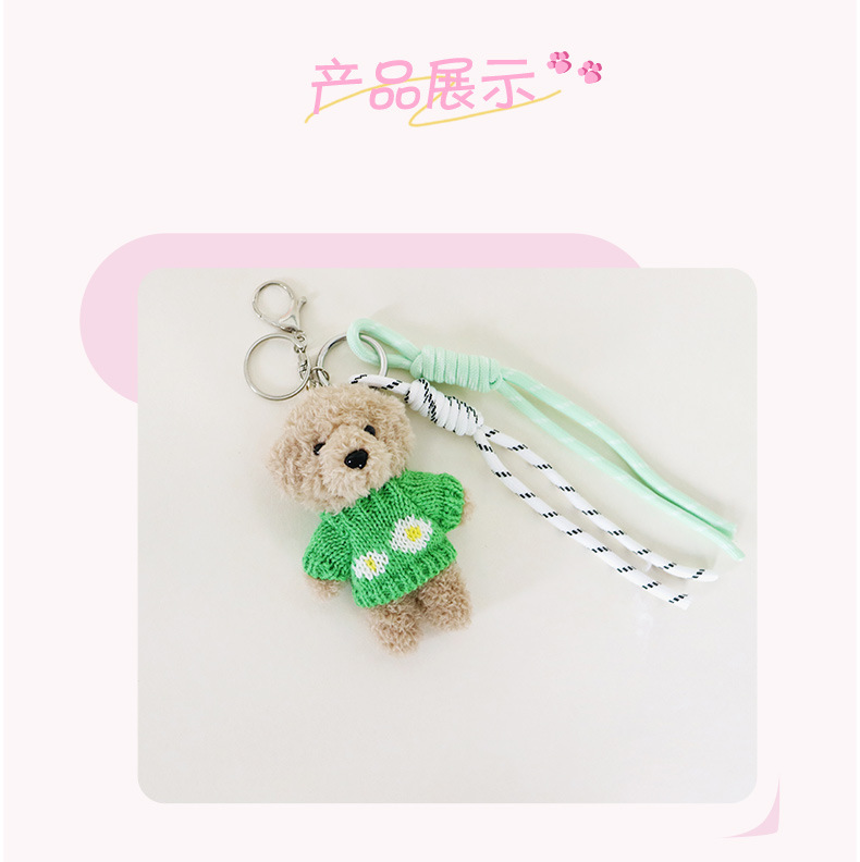 green sweater dog + green and white rope