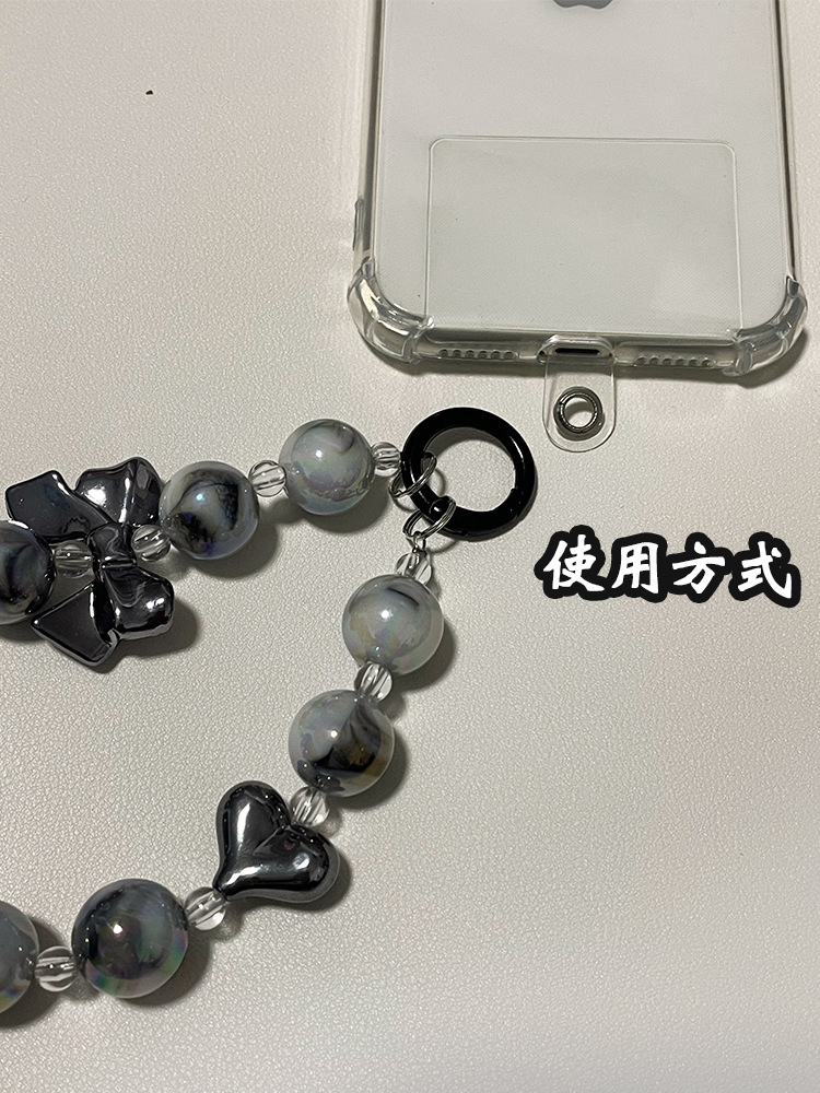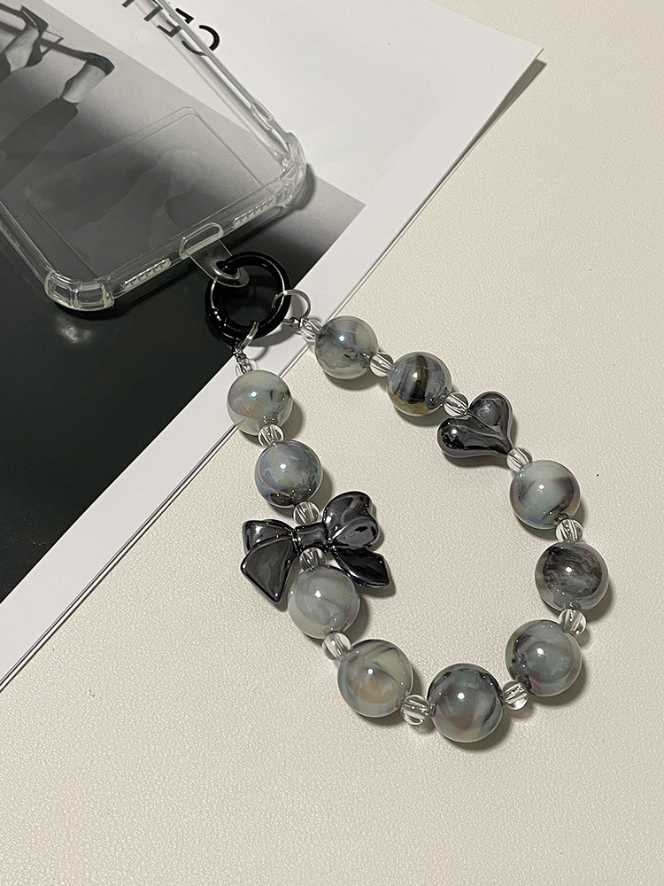 black marbling mobile phone charm + transparent card