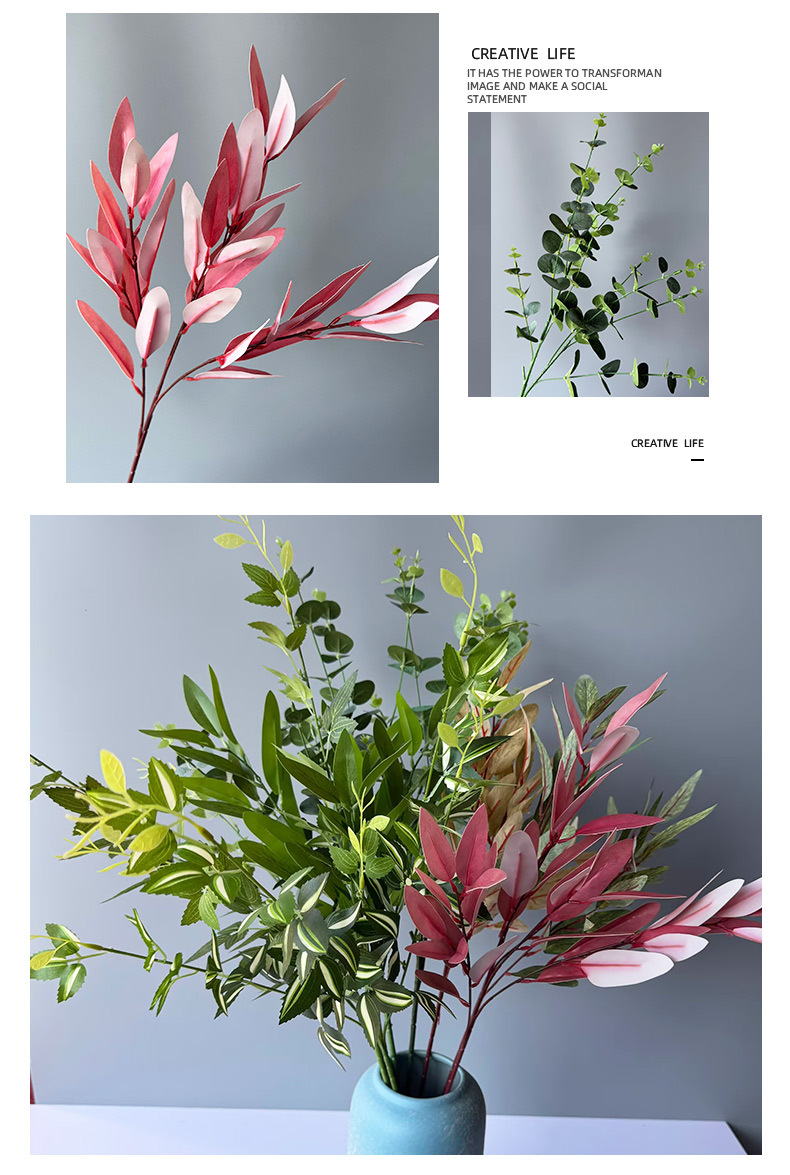 Simulation of green plants landscape plant wall cross-border wholesale hanging bamboo leaves decoration eucalyptus leaf decoration gummy leaves willow