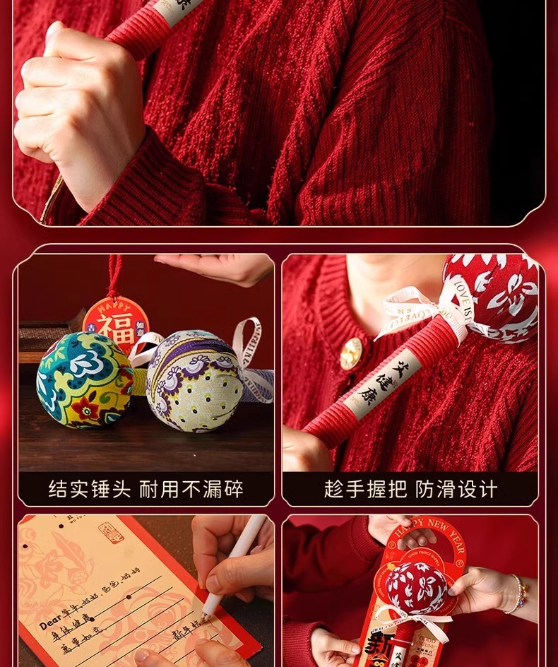 happy new year + red argy wormwood hammer gift bag