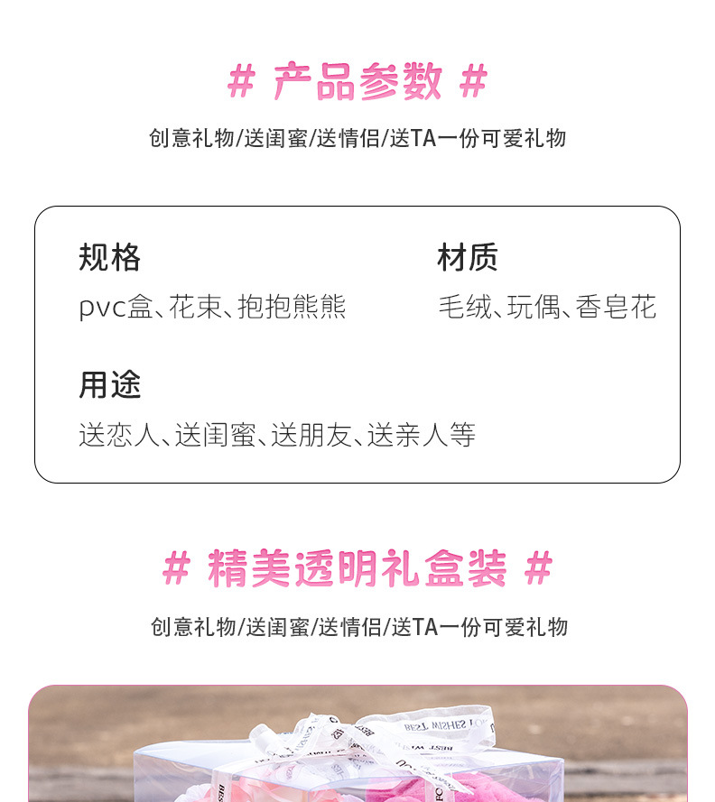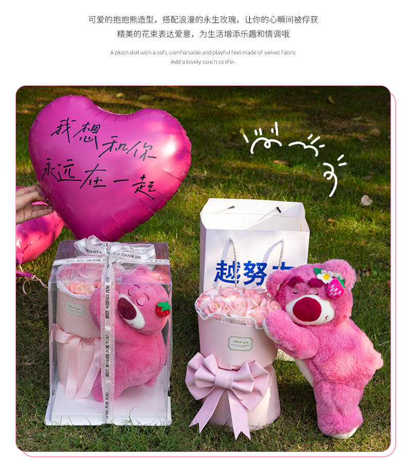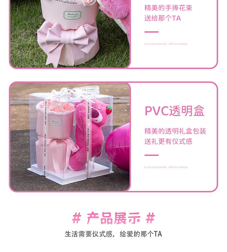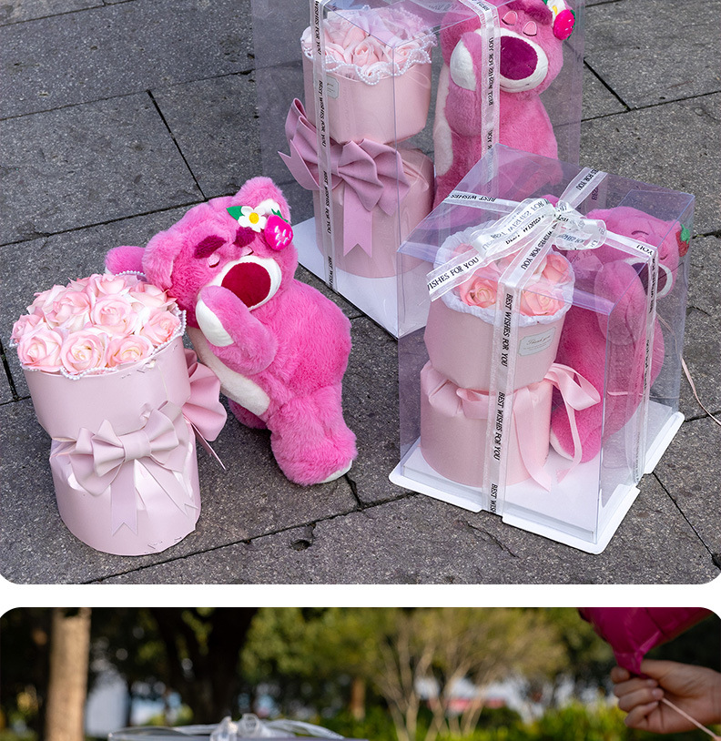 (gift box) doll bear 6 pink + light for free