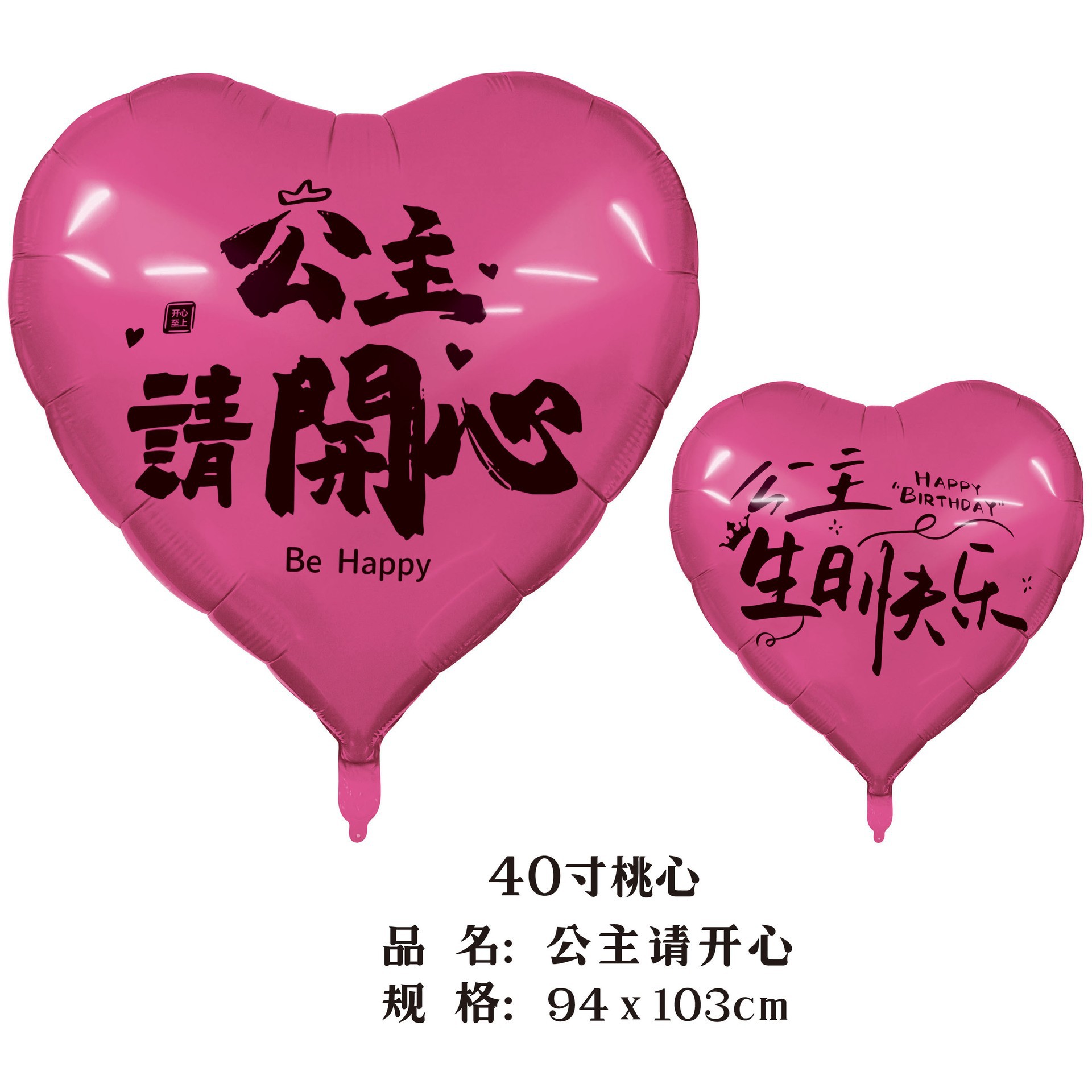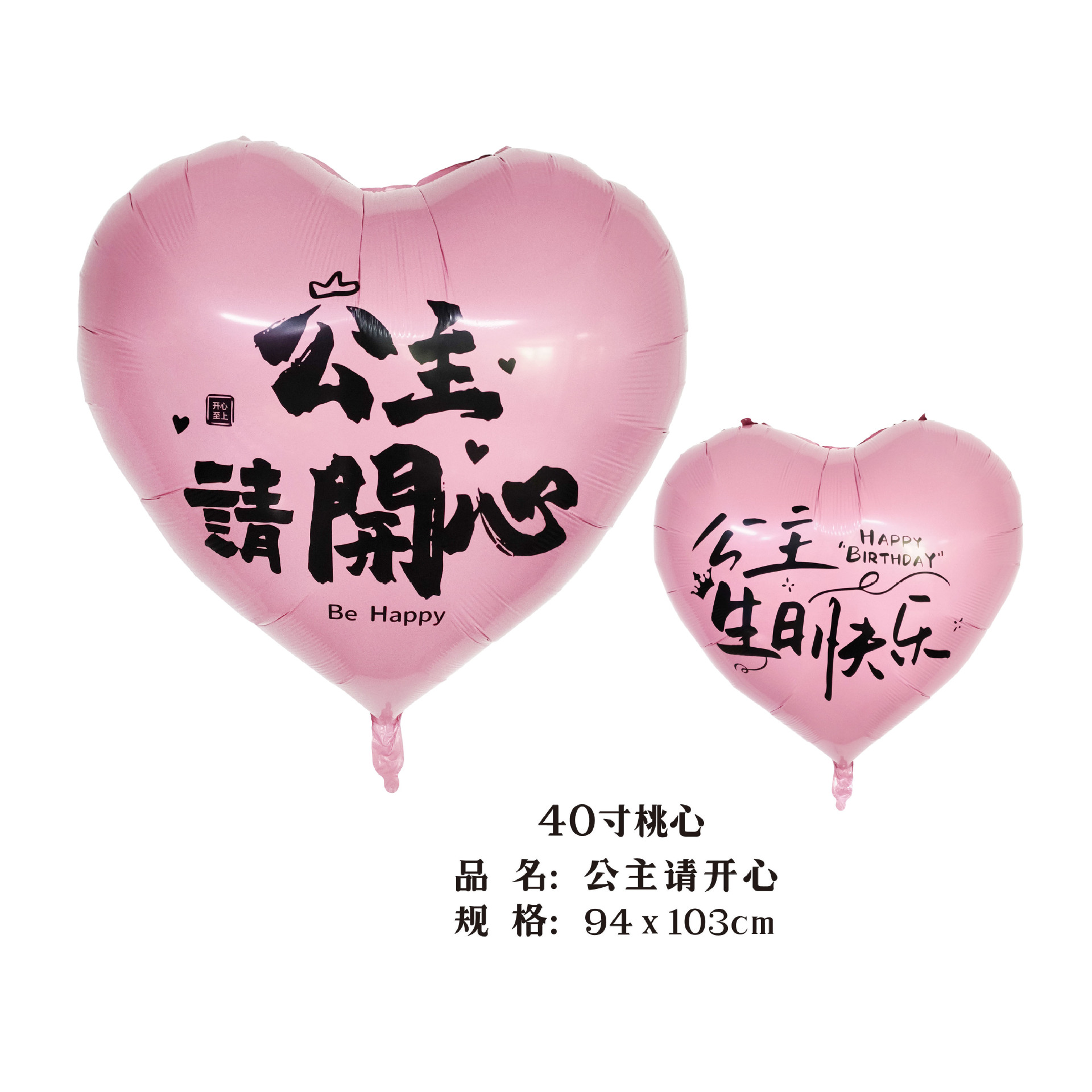 40-inch peach heart, princess please be happy (pink with black words)