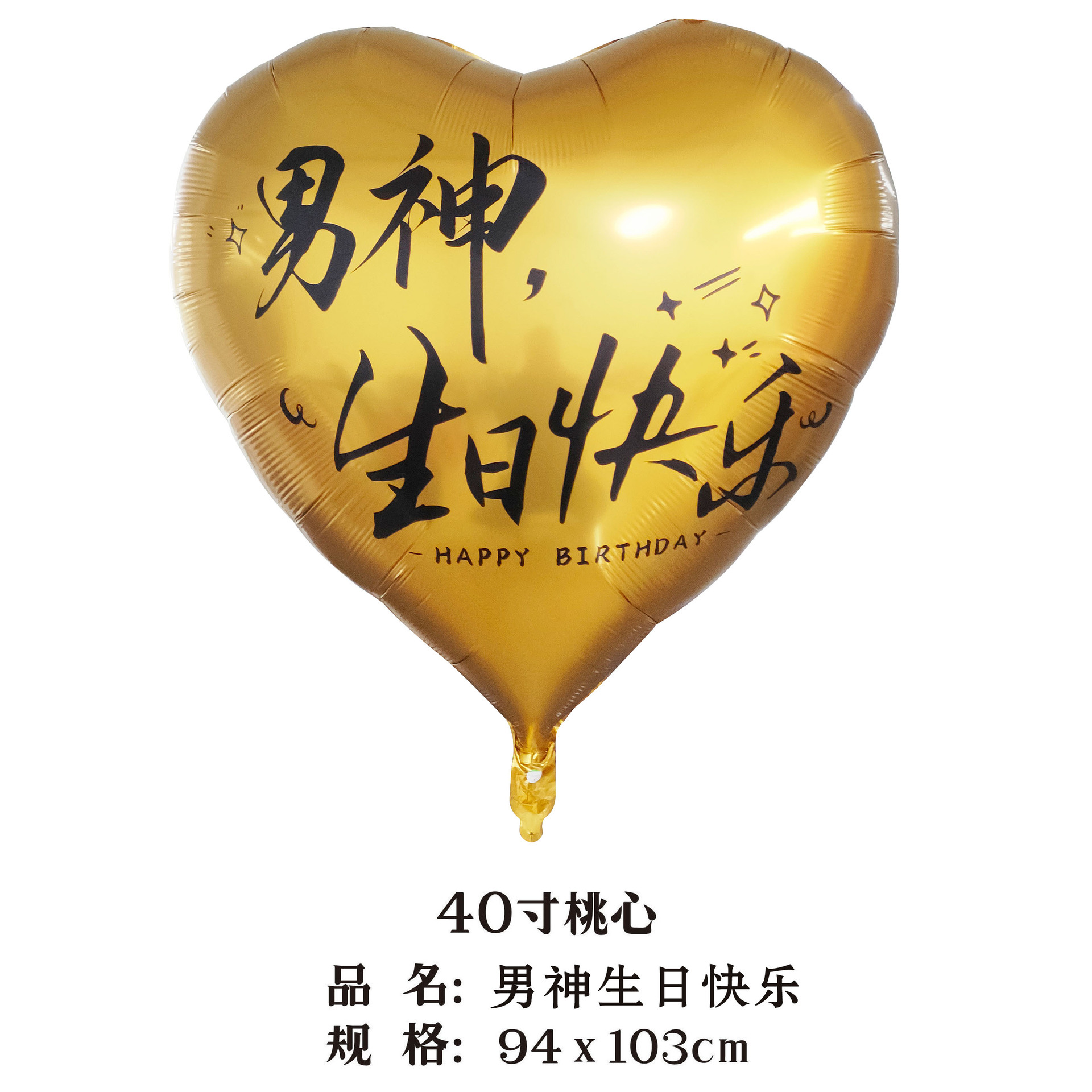40-inch peach heart, happy birthday to the male god (black words on gold background)