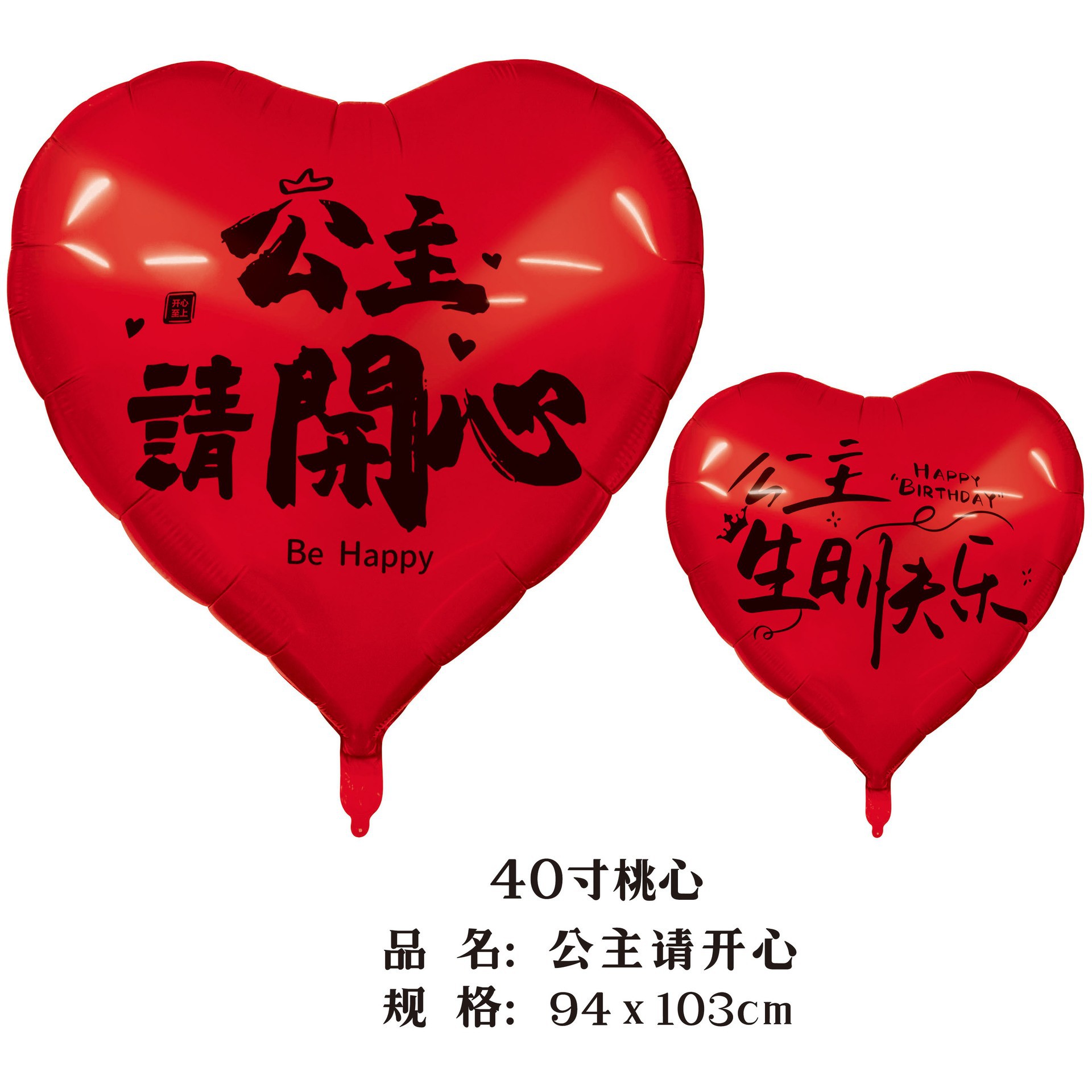 40-inch peach heart, princess please be happy (red background black words)