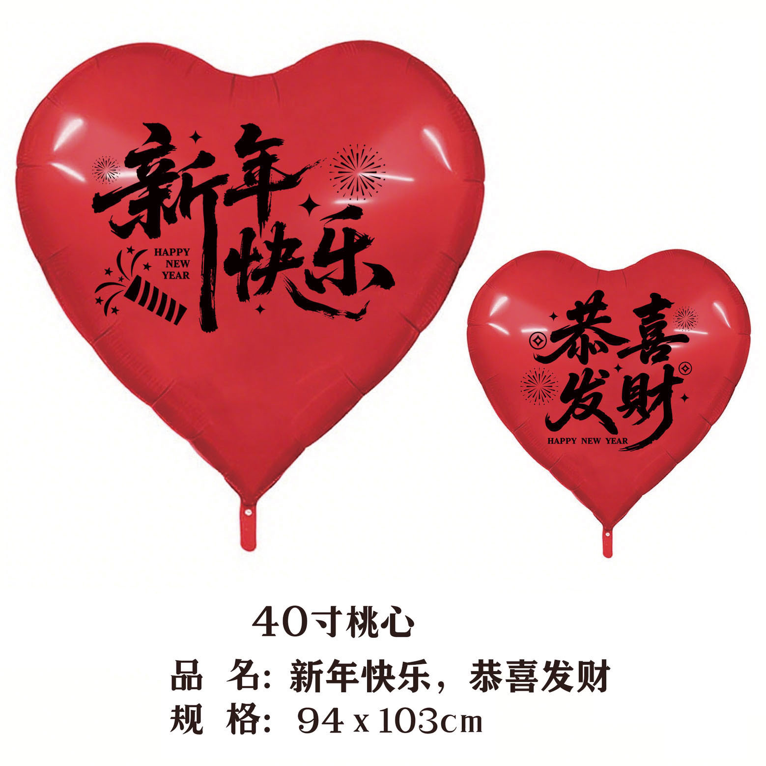40-inch peach heart, happy new year, fortune (red background black words)