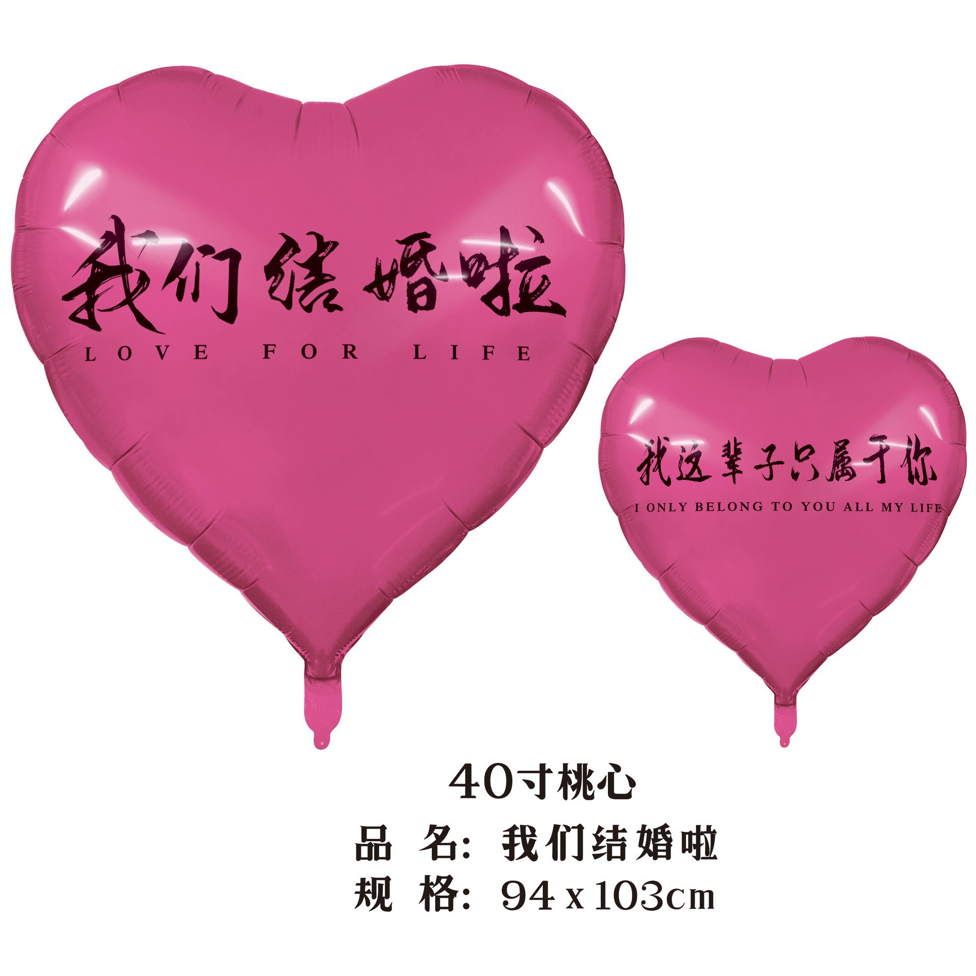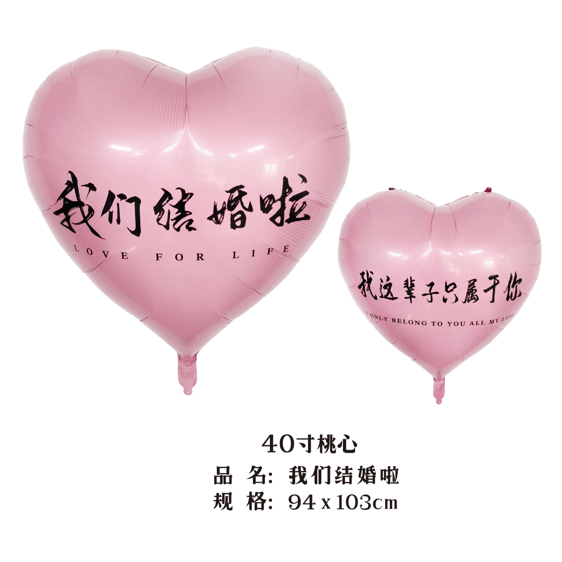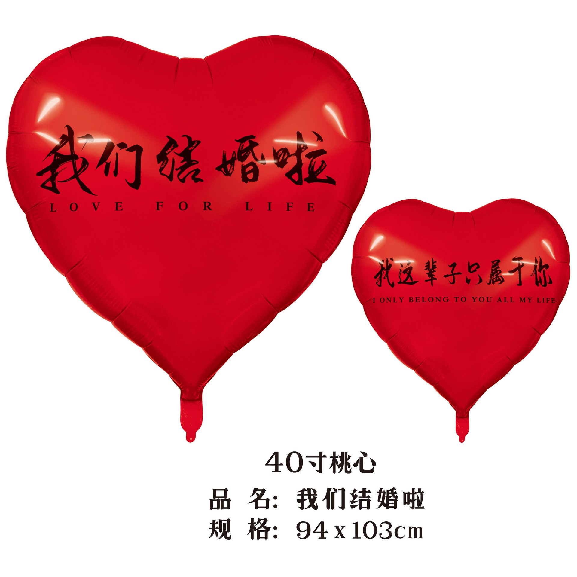 40-inch peach heart, we are married (red background black words)