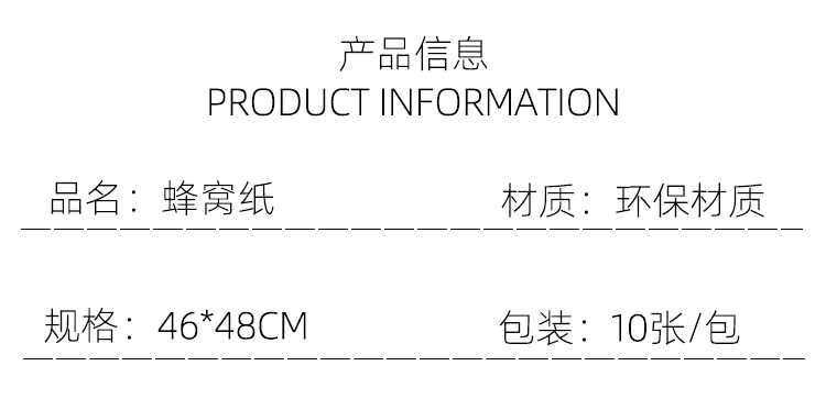 honeycomb paper water powder 10 sheets 46 * 48cm; general-purpose