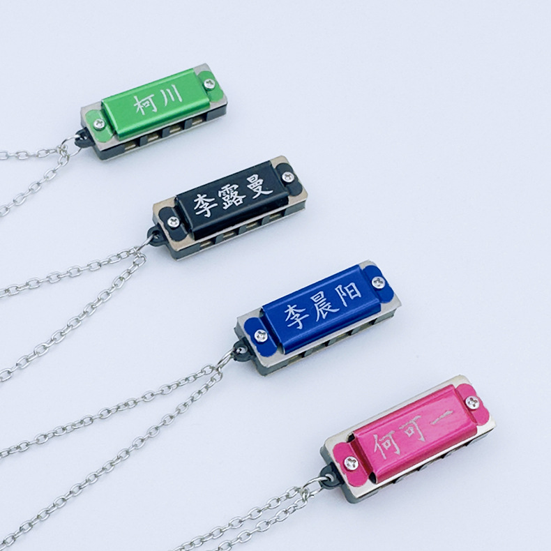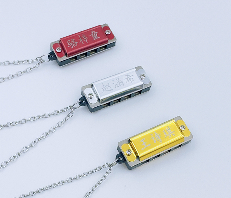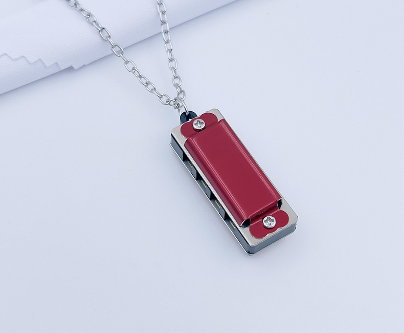 mini metal small harmonica (rose red) necklace