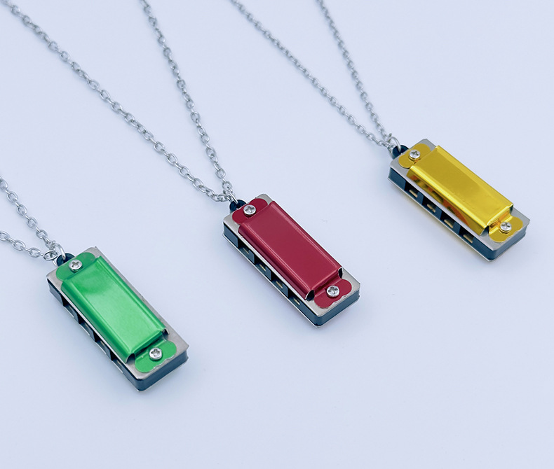 mini metal small harmonica (green) necklace