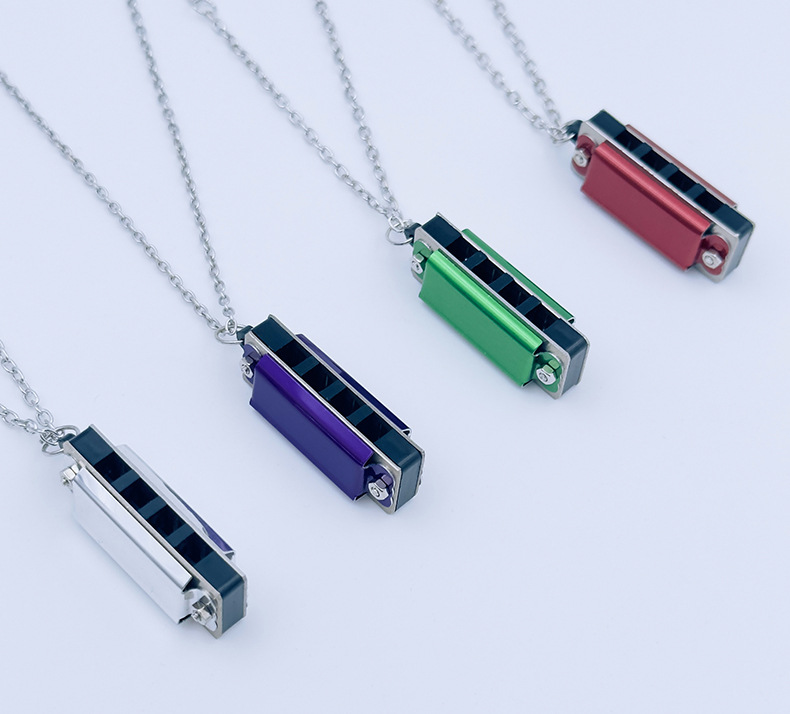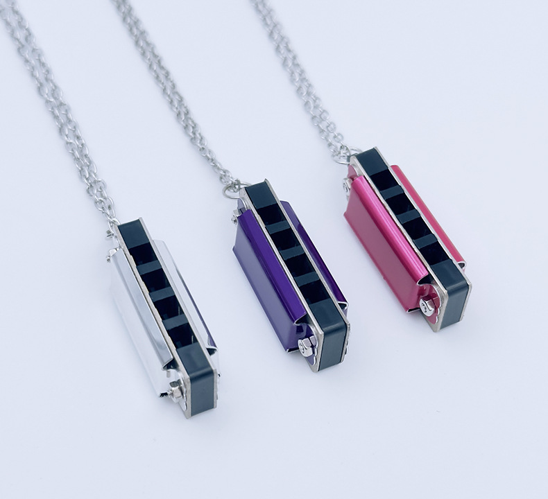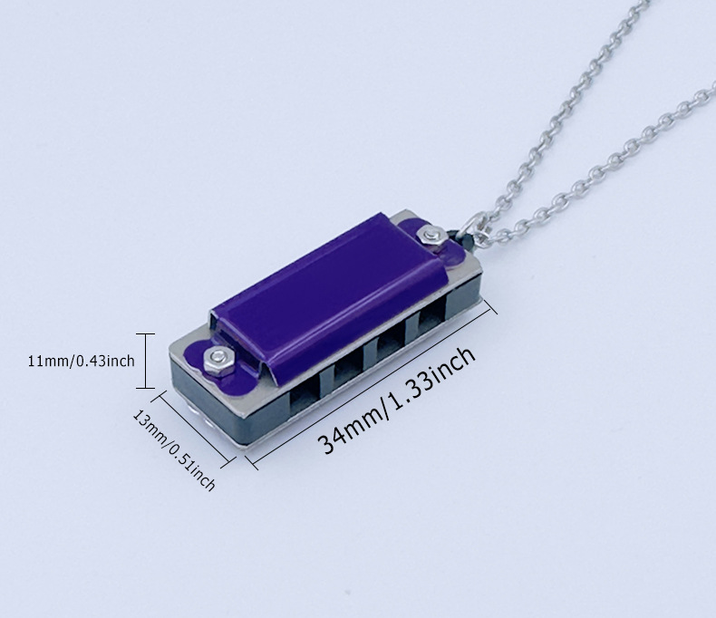 mini metal small harmonica (purple) necklace