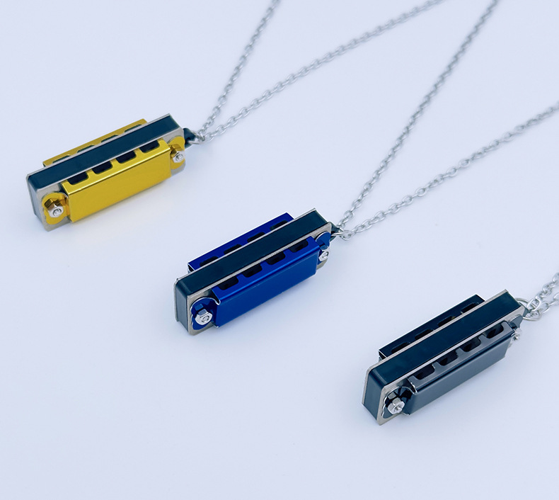 mini metal small harmonica (blue) necklace