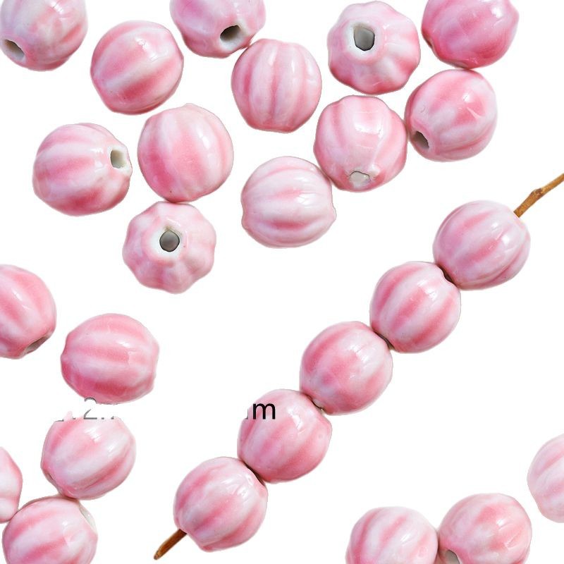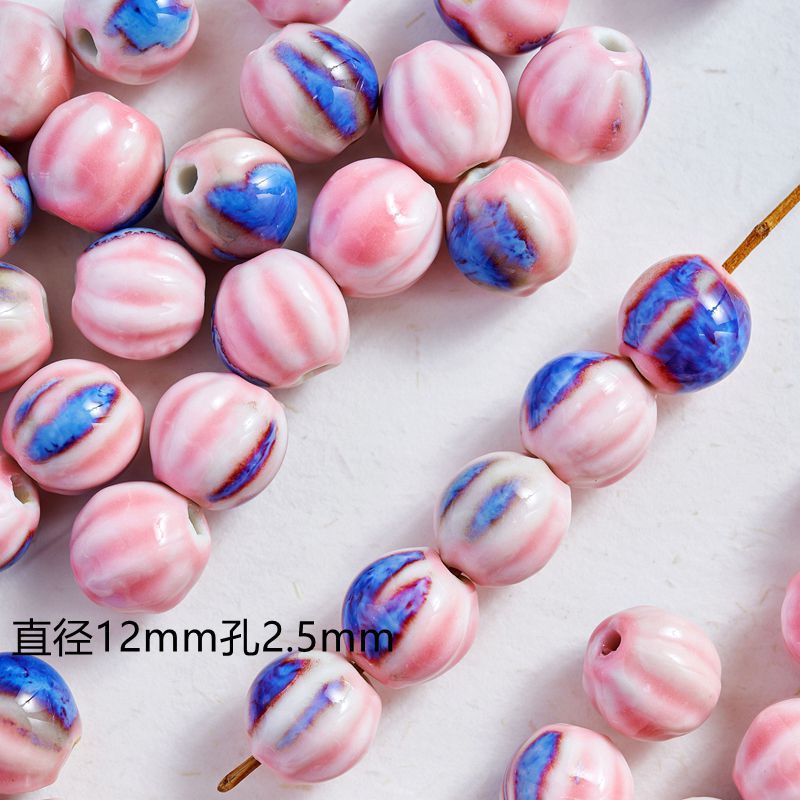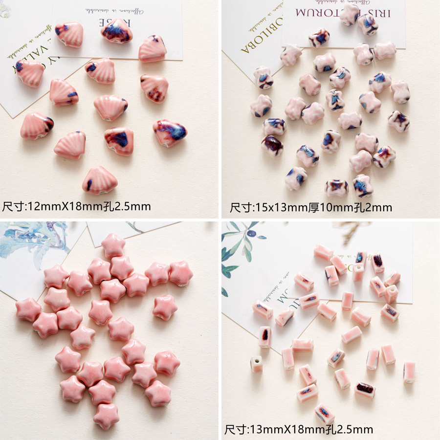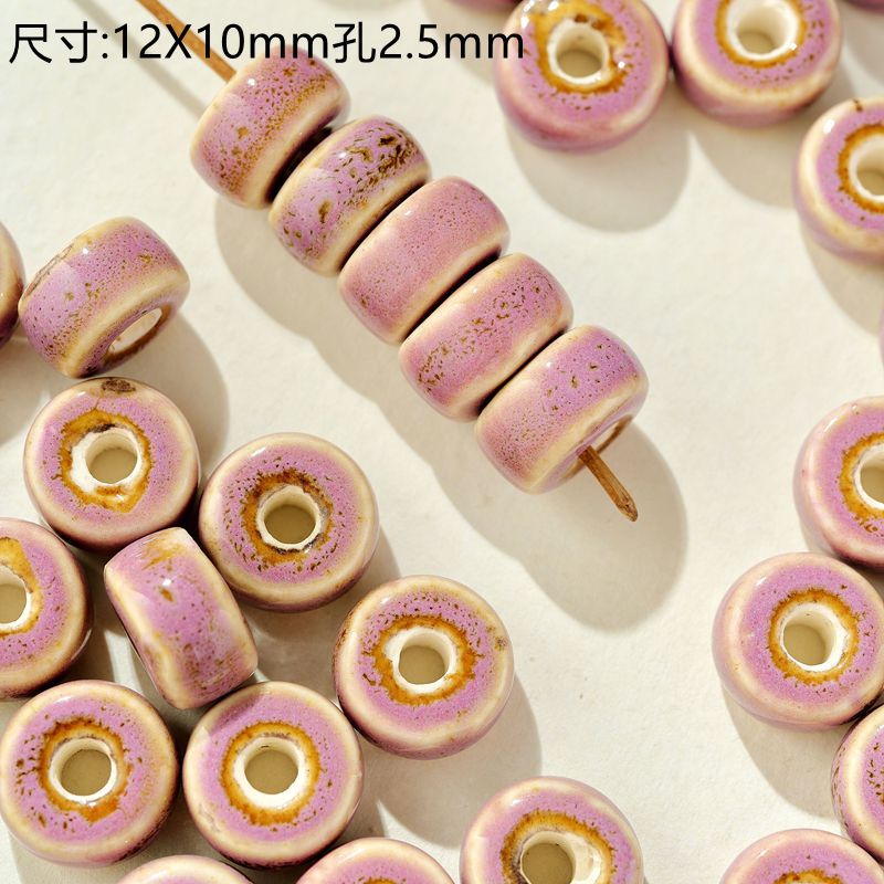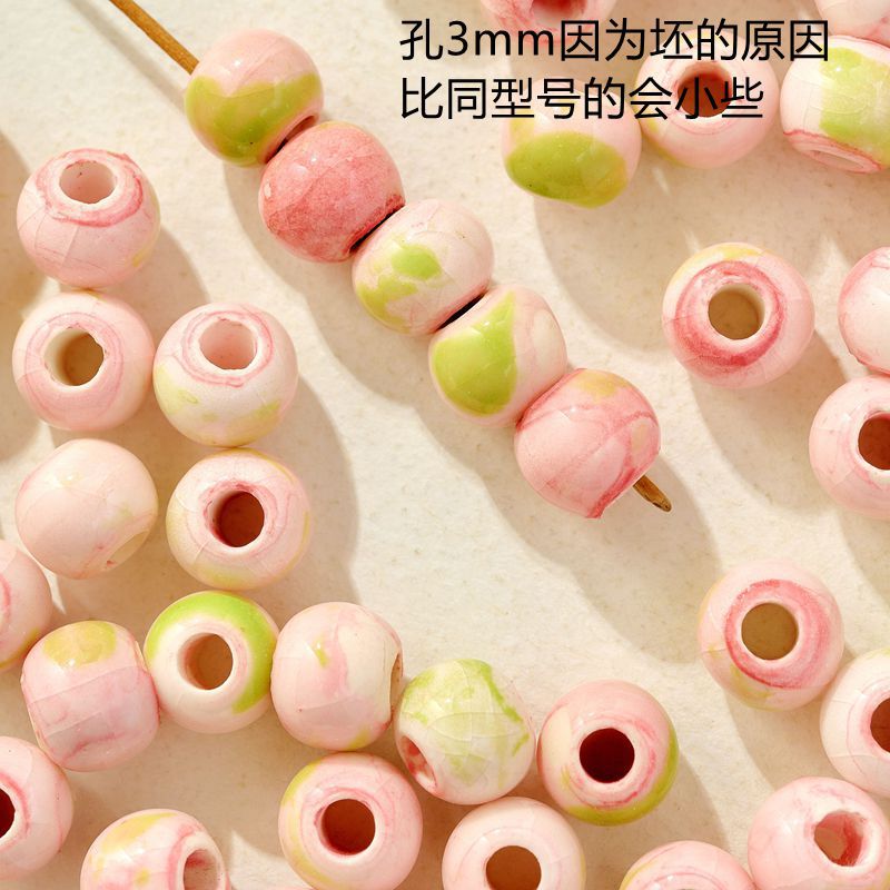 jingdezhen ceramic ornament pink big-hole bulk beads diy material package hand-woven student female bead bracelets basket