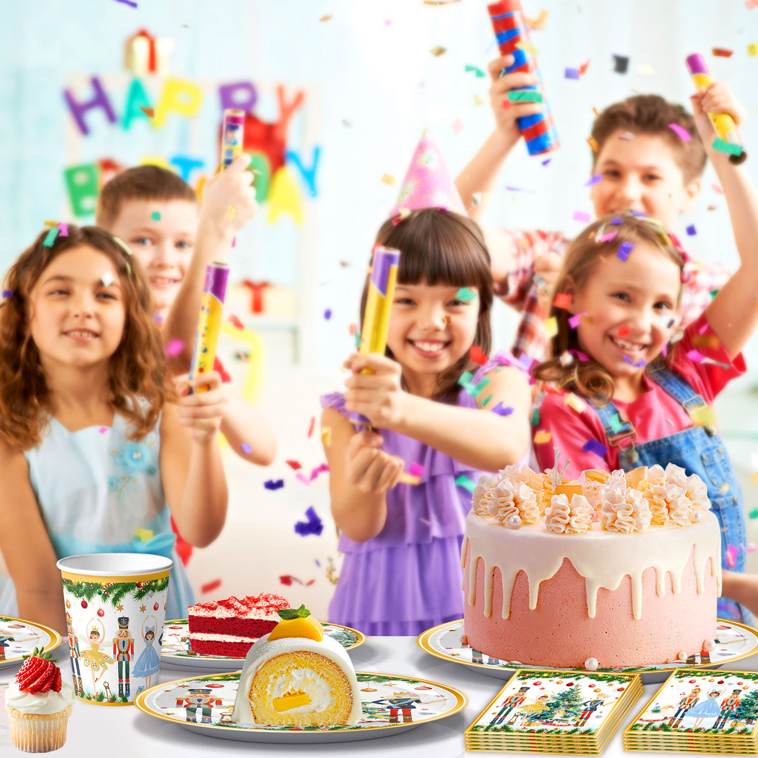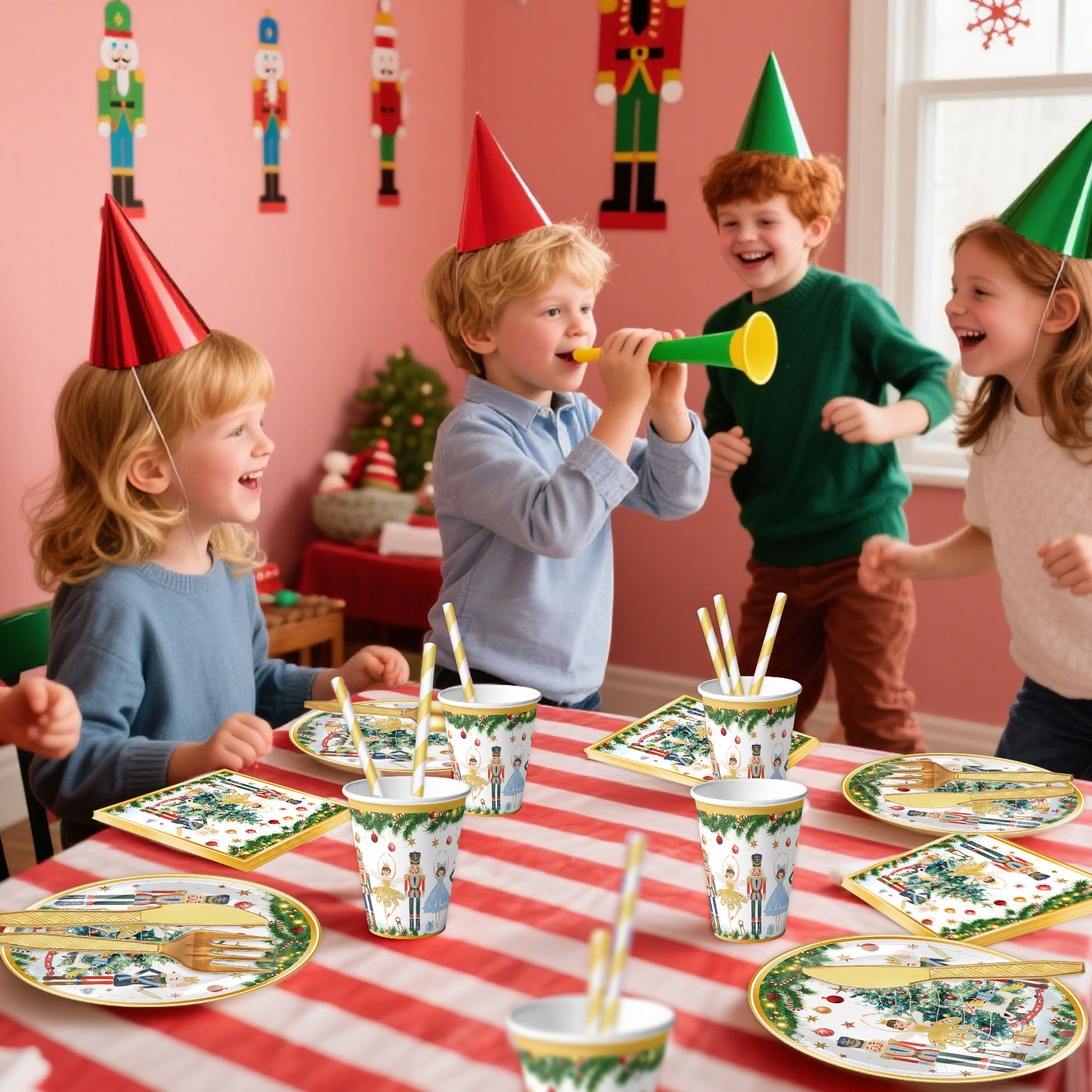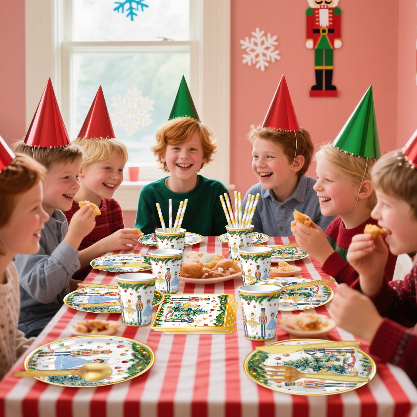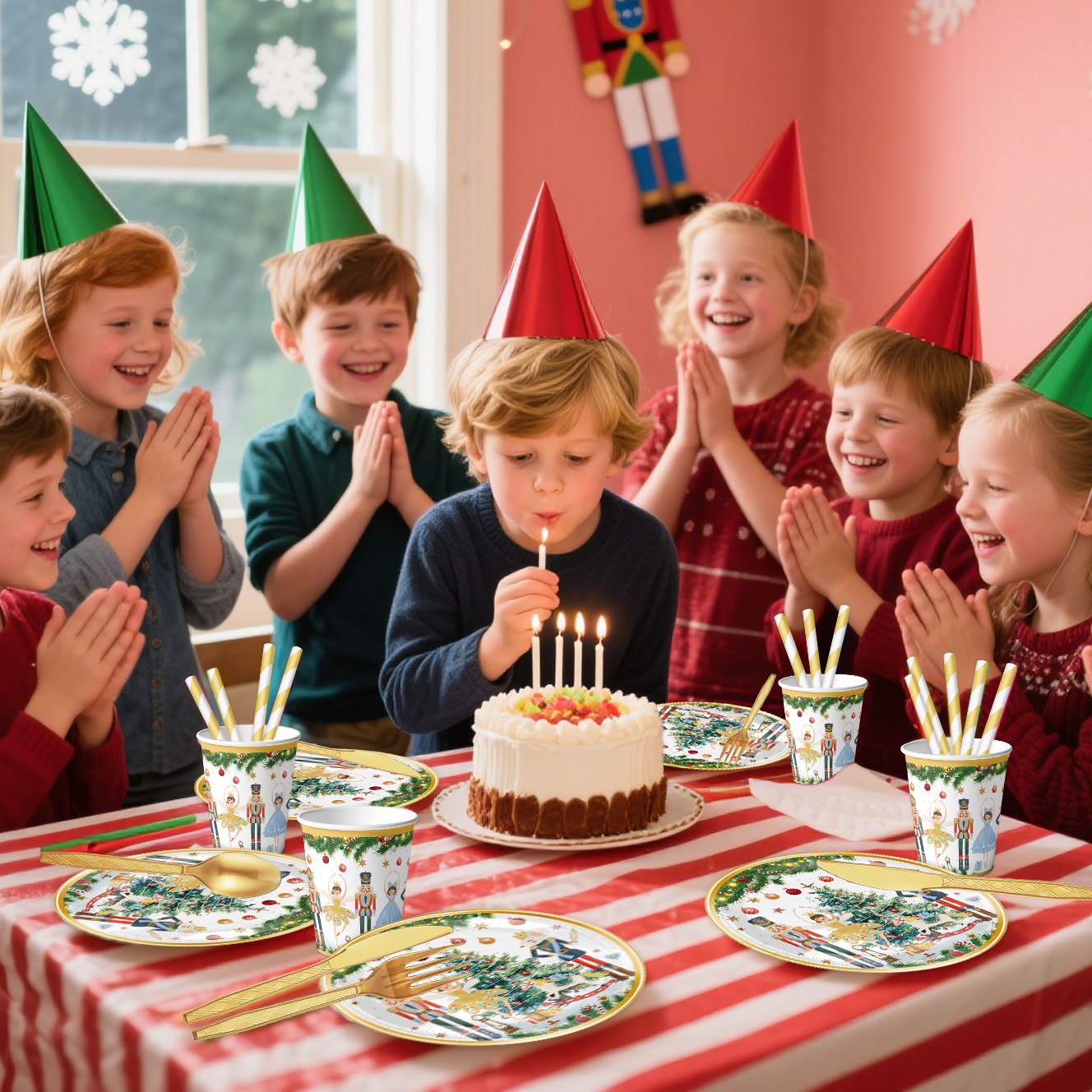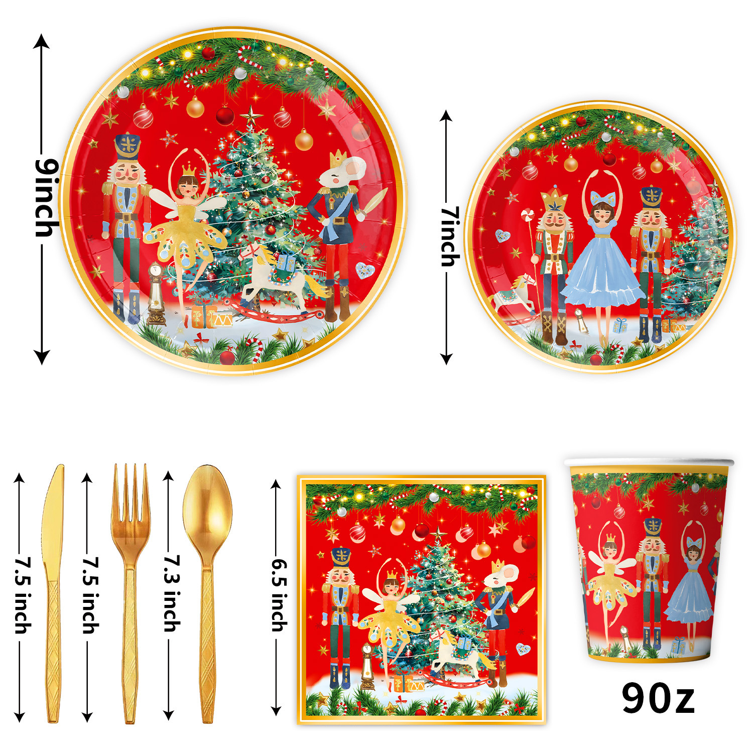 main picture 6-piece set (7-inch 10+9-inch 10 + tissue 20 + paper cup 10 + tablecloth 1 + hanging flag 1)-red christmas