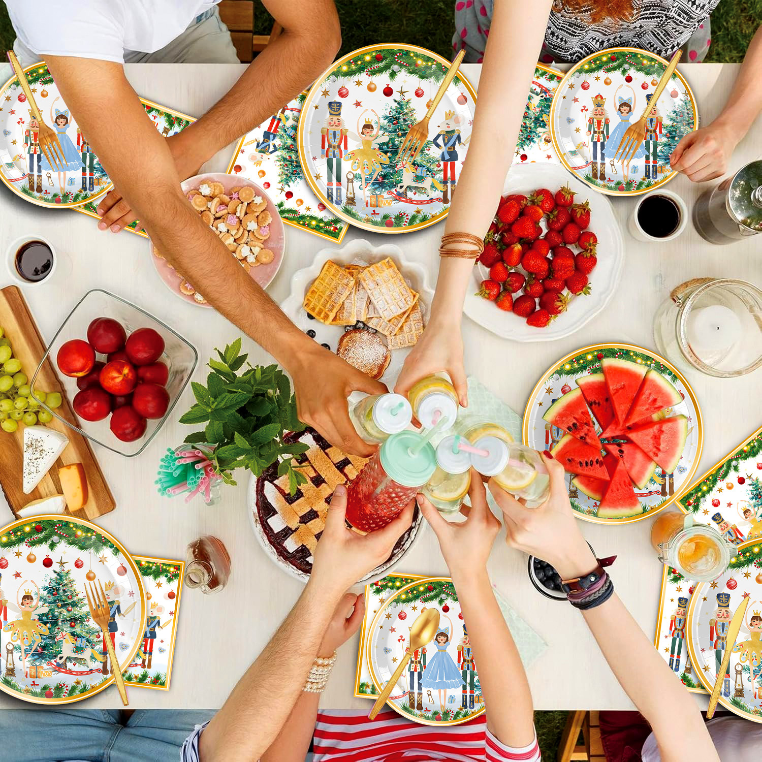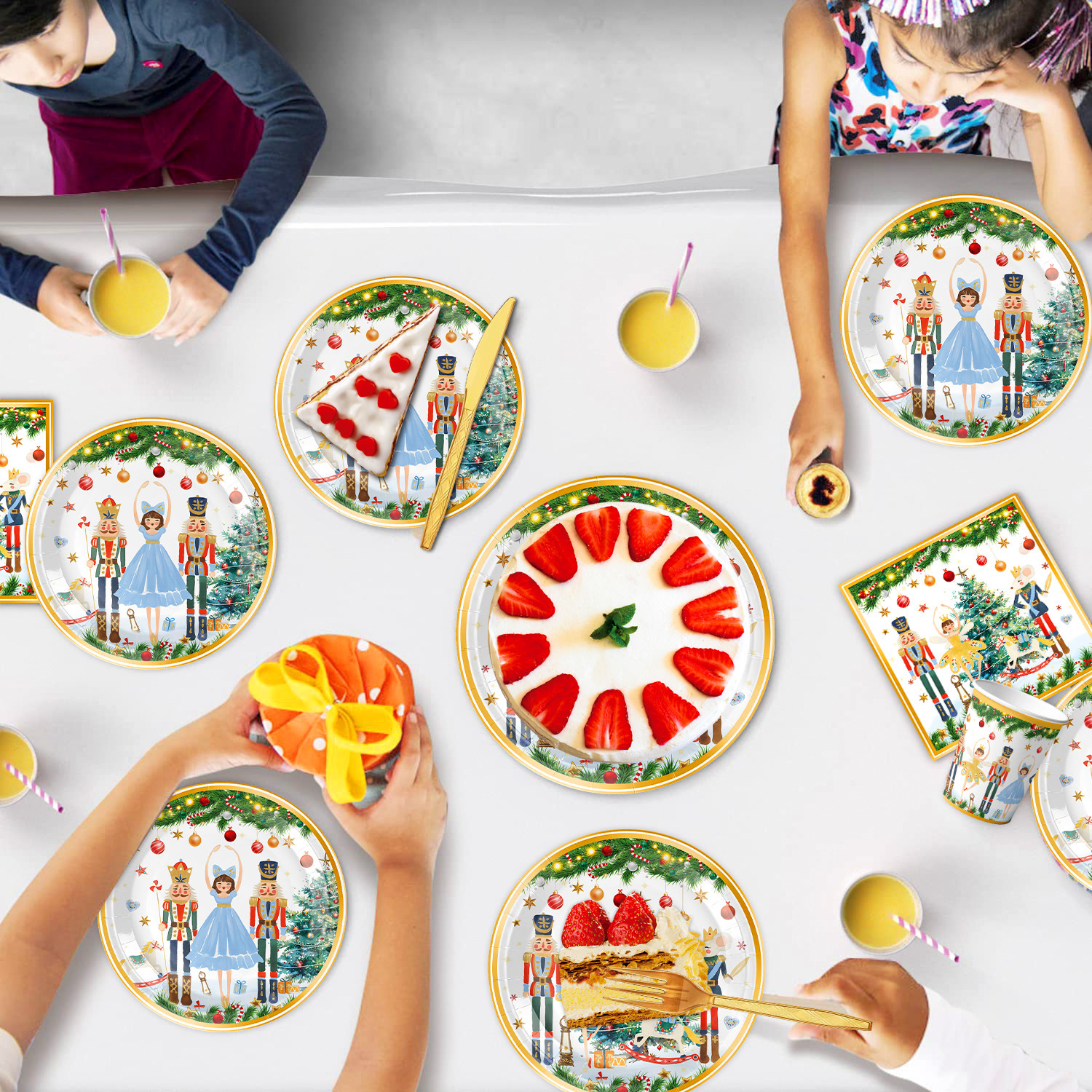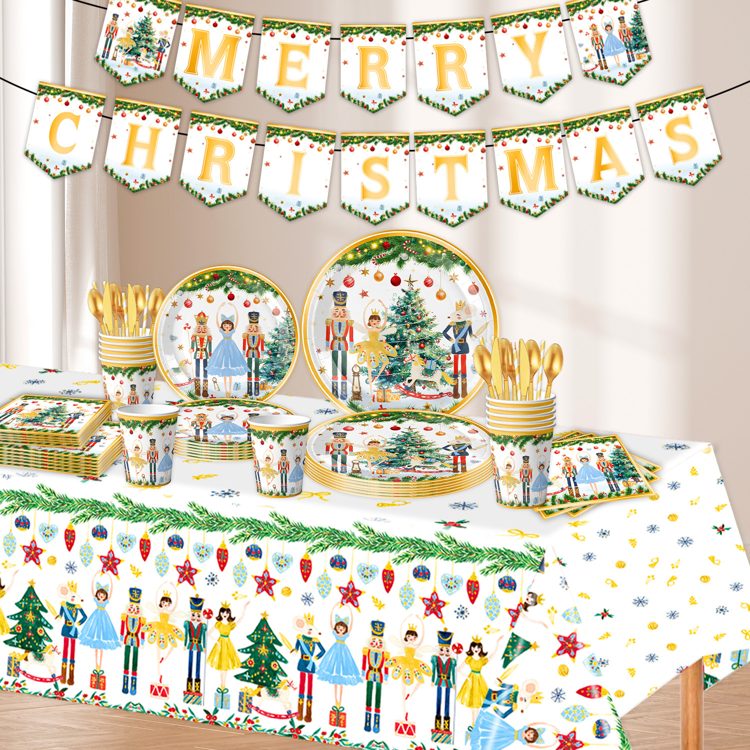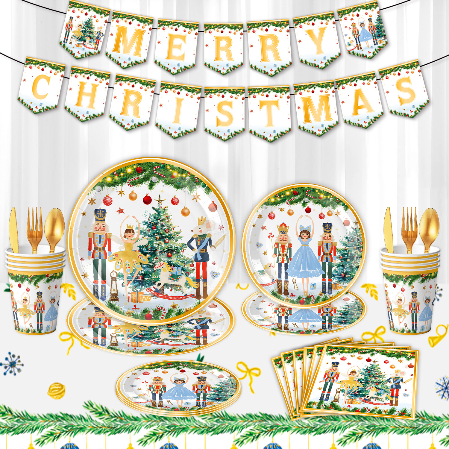 main picture 6-piece set (7-inch 10+9-inch 10 + tissue 20 + paper cup 10 + tablecloth 1 + hanging flag 1)-white christmas
