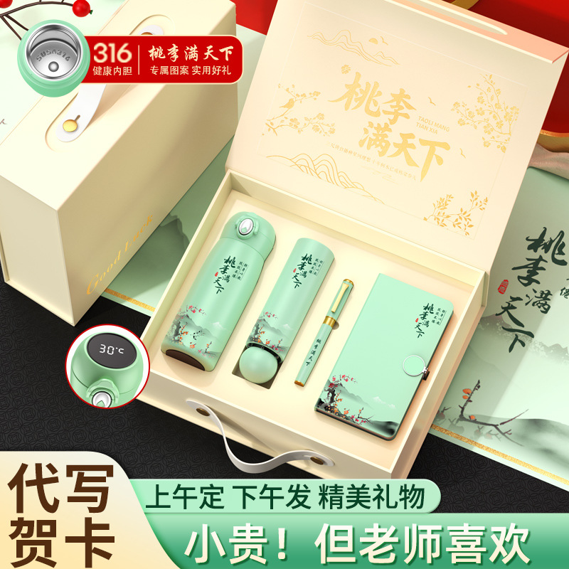 green 316 peach cup + notebook + pen/gift box
