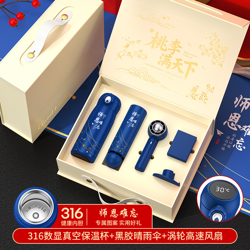 blue 316 teacher's kindness cup + umbrella + little fan + mosquito repellent bracelet/gift box