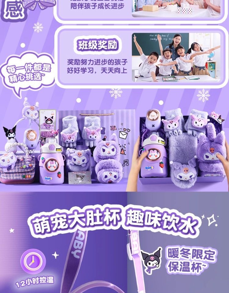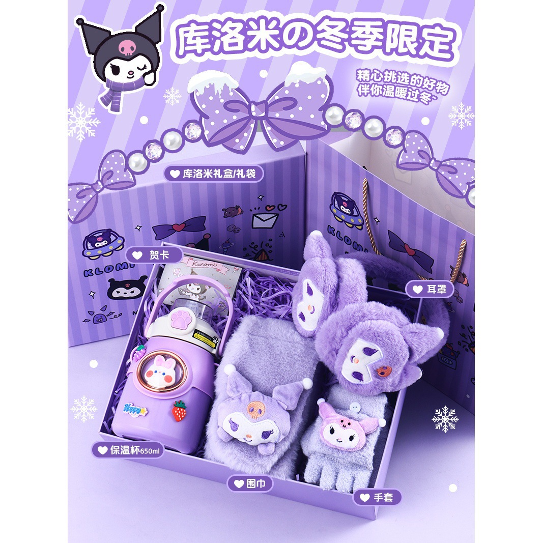 [scarf + gloves + earmuffs + thermos cup] (send greeting card + lighting chain + gift box + gift bag)