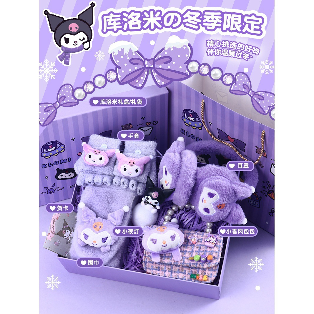 [scarf + gloves + earmuffs] + bag + night light (send greeting card + lighting chain + gift box + gift bag)