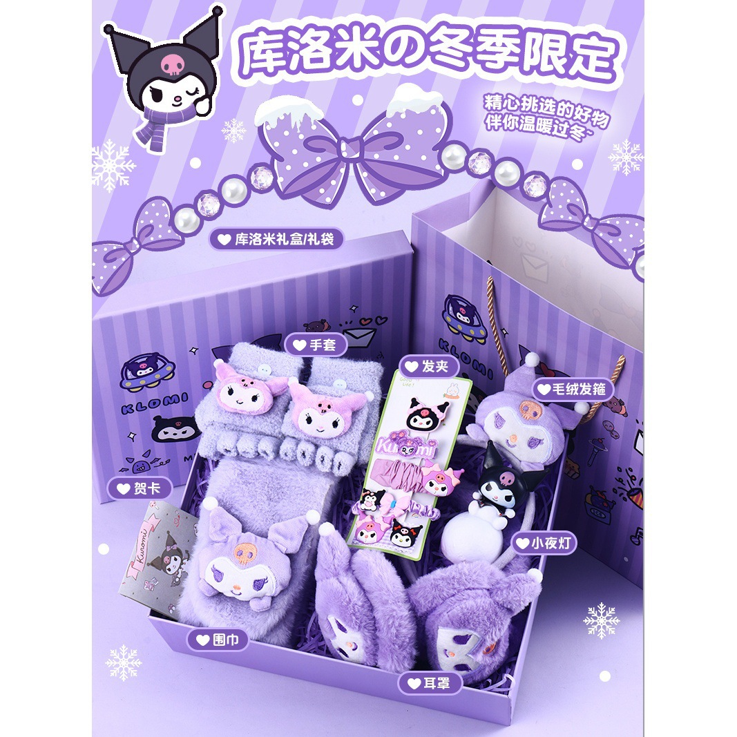 [scarf + gloves + earmuffs] + barrettes + headband + night light (send greeting card + lighting chain + gift box + gift bag)