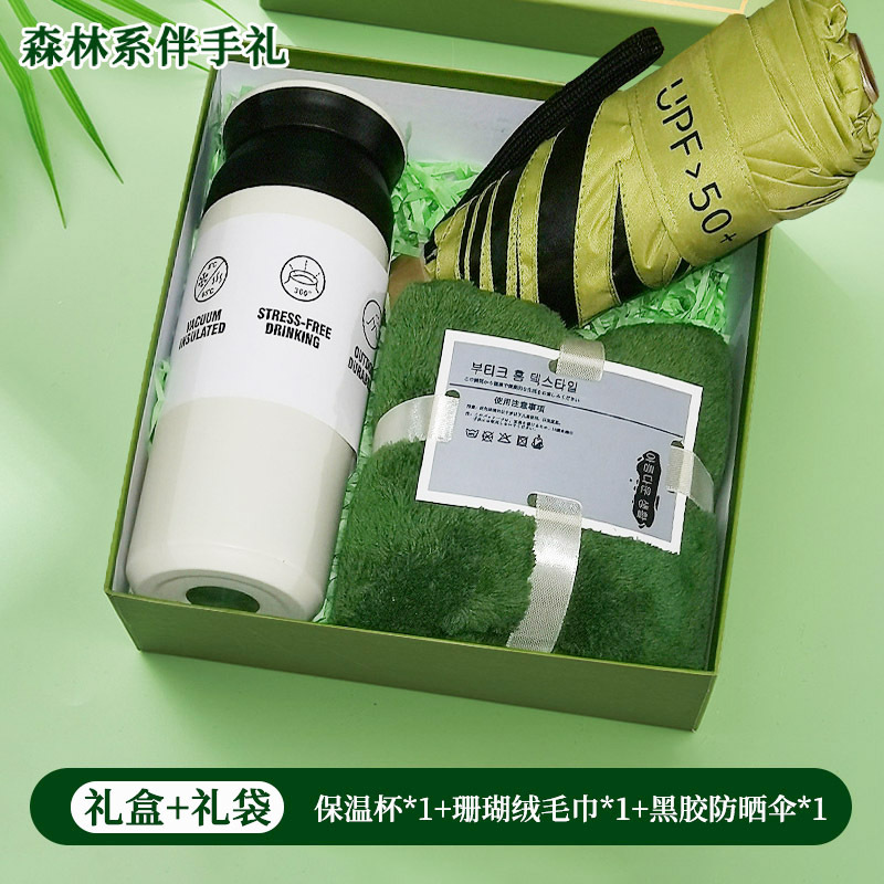 l15. thermos cup + towel + umbrella