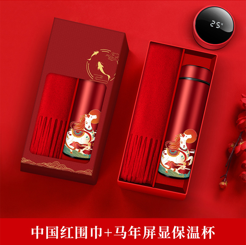 [year of the horse special edition] screen insulation cup + chinese red scarf
