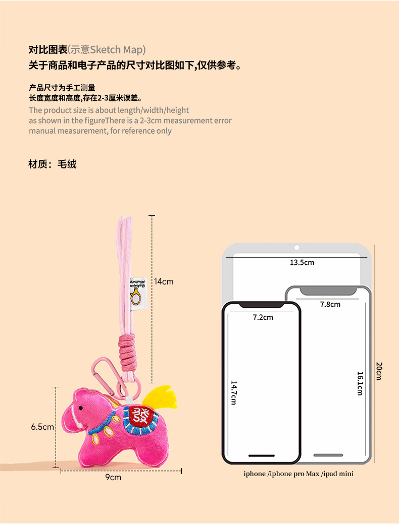 rich plush pony pendant-rose red