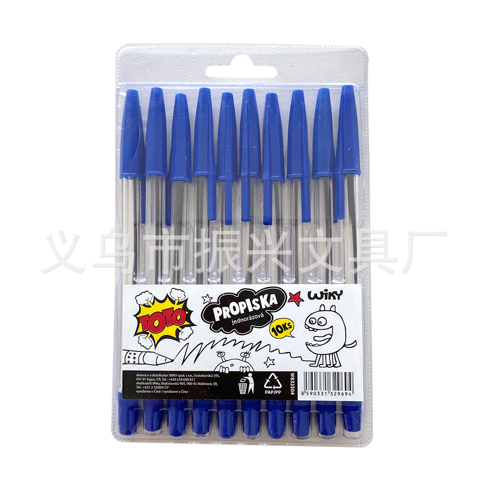 10-piece set ballpoint pen pull cover blue oily round pen bubble shell card
