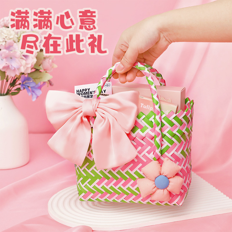 pink green knitted basket [package b6]]