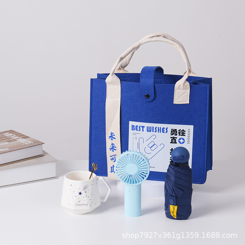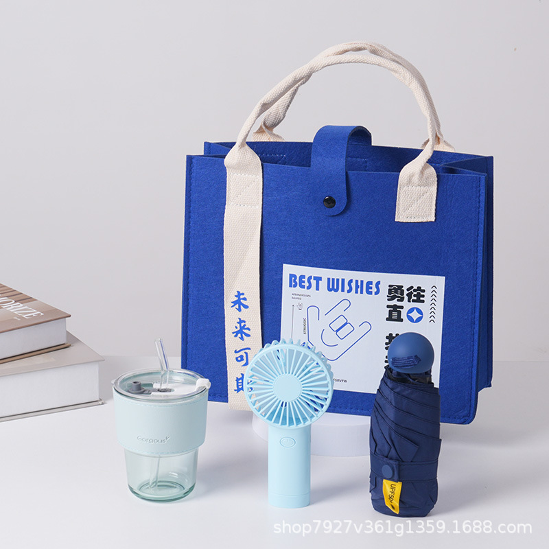 go straight for money 12 [show temperature coffee cup + fan + umbrella + felt bag]]